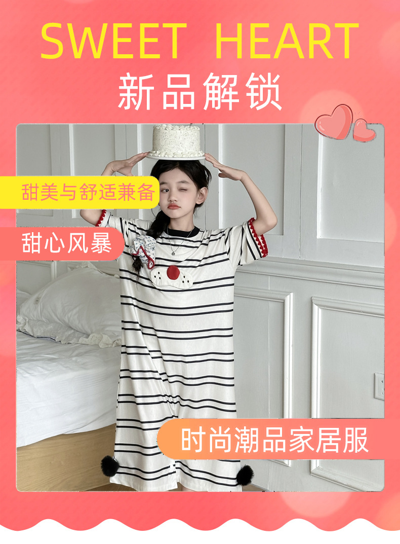 큰 어린이 2024 새로운 스타일의 여름 옷 한국 스타일의 어린 소녀의 집 옷 소녀의 잠옷스토어 가기