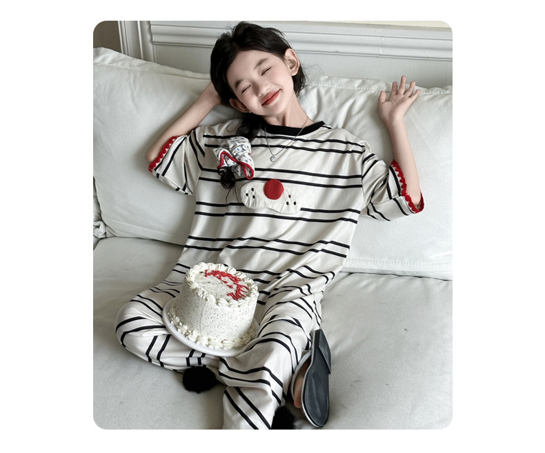 큰 어린이 2024 새로운 스타일의 여름 옷 한국 스타일의 어린 소녀의 집 옷 소녀의 잠옷