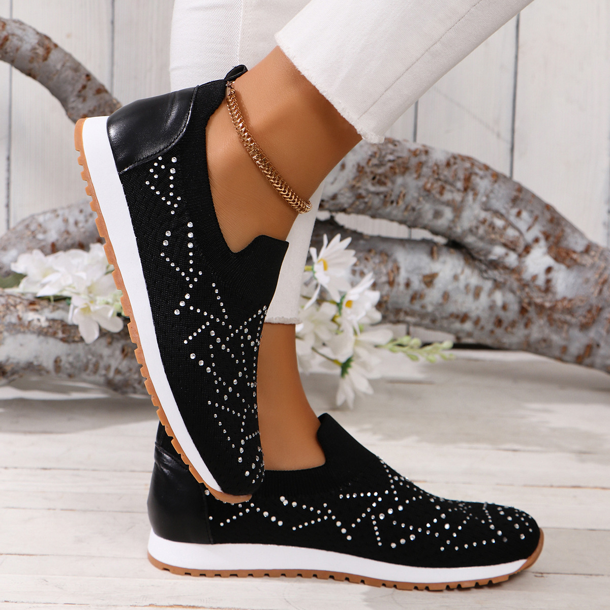 2024 여름 새로운 대외 무역 플러스 사이즈 숙녀 두꺼운 바닥 모조 다이아몬드 플라이 운동화 유럽과 미국 스타일의 캐주얼 신발