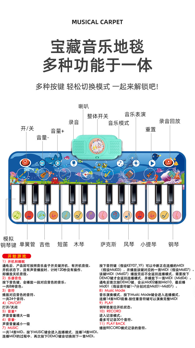 국경 간 아마존 핫 피아노 음악 카펫 페달 부모-조기 교육 계몽주의 다기능 크롤링 게임 매트 춤