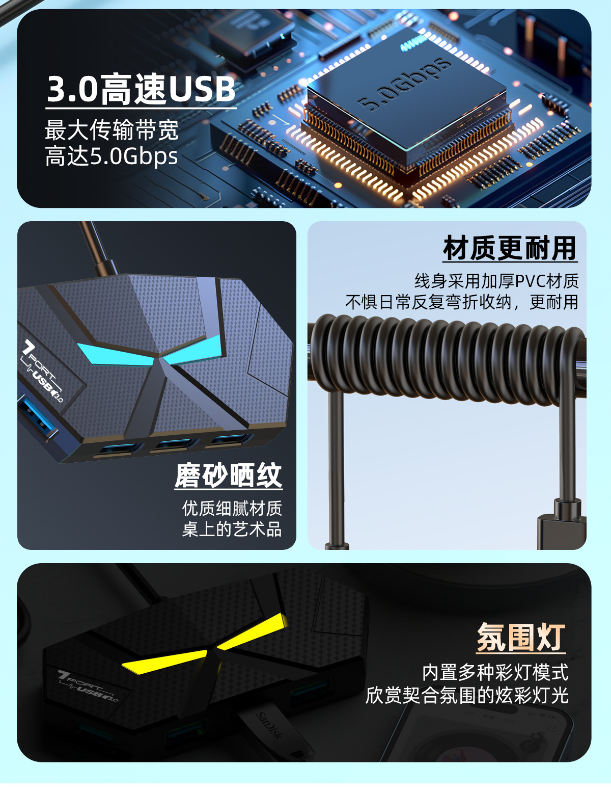 새로운 다채로운 분위기 조명 HUB3.0 노트북을 위한 고속 분배기 확장 1-다 회전스토어 가기
