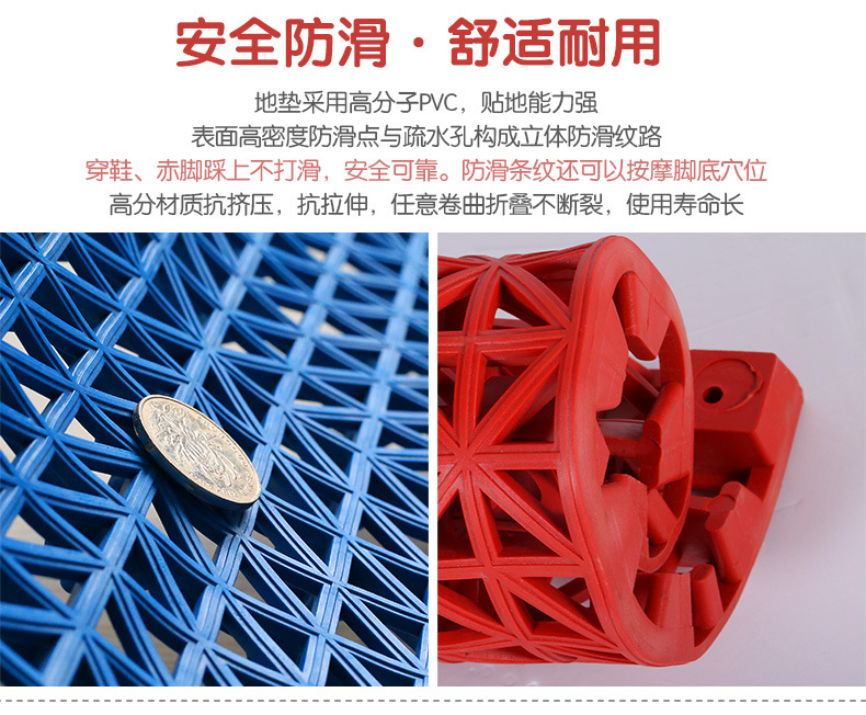 주방, 화장실 및 욕실 발 매트 접합 중공 방수 매트 엔지니어링 바닥 매트 용 두꺼운 PVC 방수 미끄럼 방지 매트