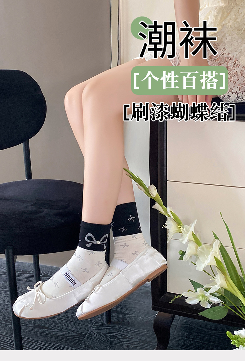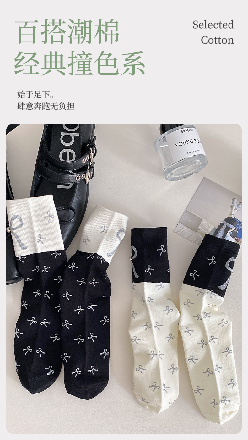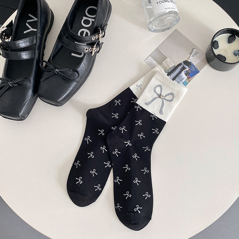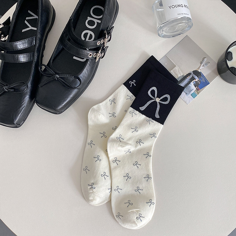 새로운 2024 사계절 풀 프린트 스프레이 페인트 폴로 도트 활 장식 색상 매칭 틈새 디자인 트렌디 한 올 매치 미드 튜브 양말