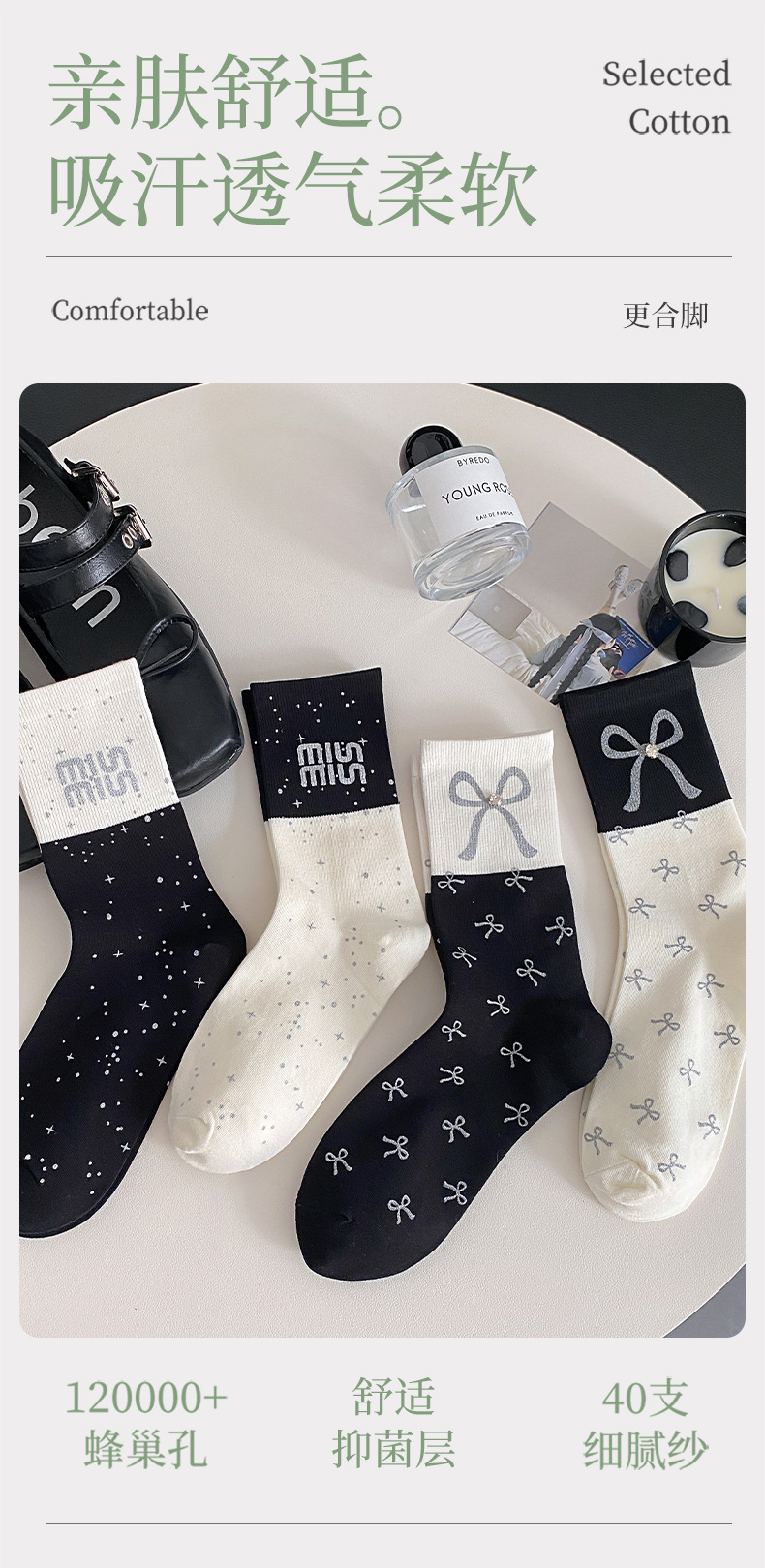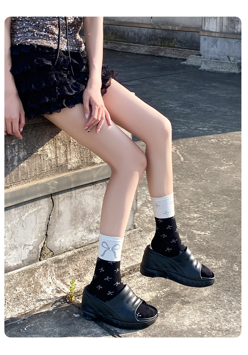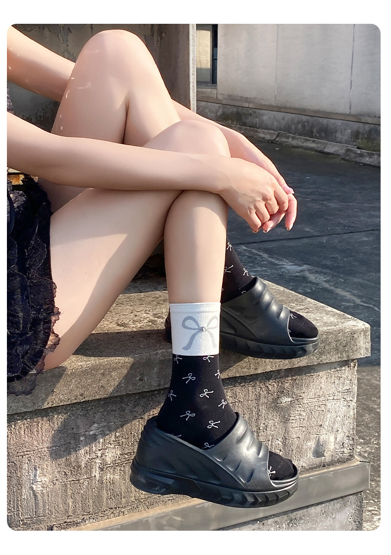 새로운 2024 사계절 풀 프린트 스프레이 페인트 폴로 도트 활 장식 색상 매칭 틈새 디자인 트렌디 한 올 매치 미드 튜브 양말