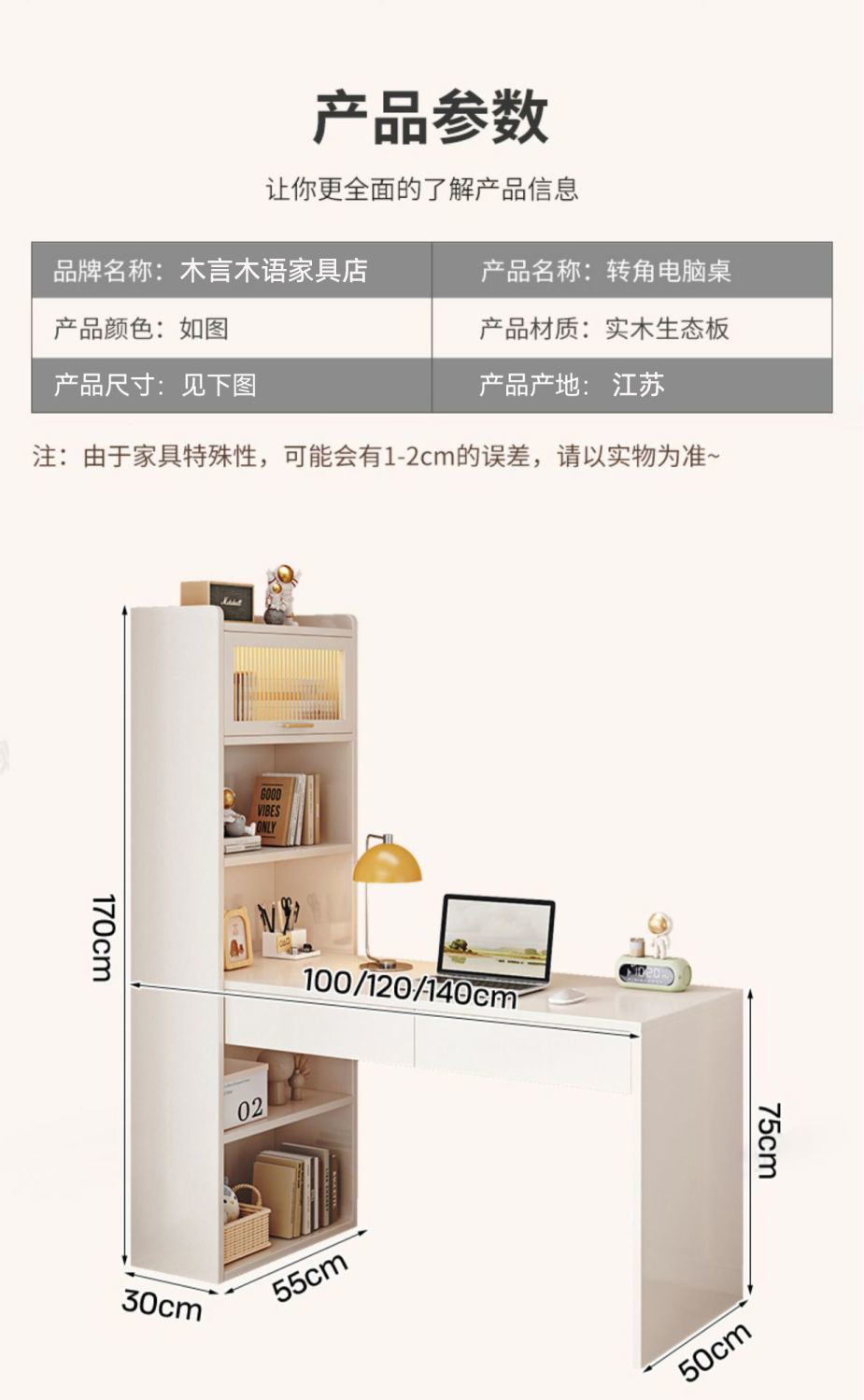 크림 스타일 솔리드 우드 다기능 책장 바닥 서 벽 기울기 연구 테이블 코너 책상 홈 침실 통합 필기 테이블스토어 가기
