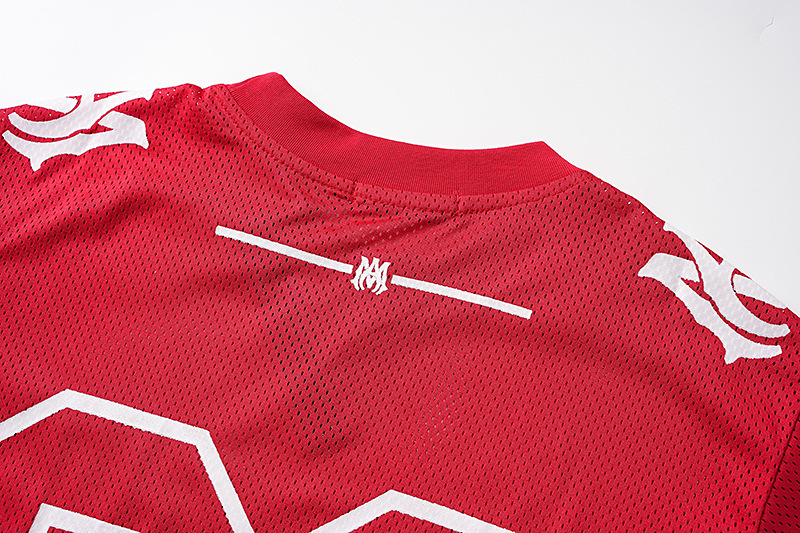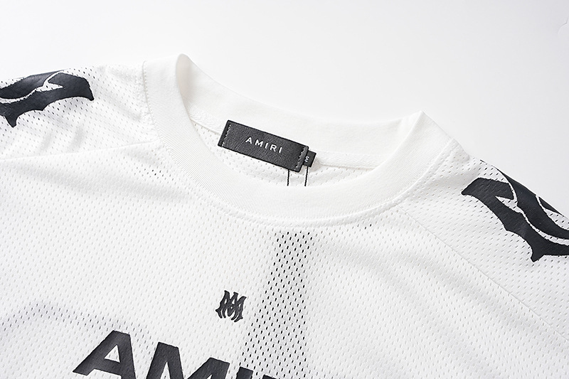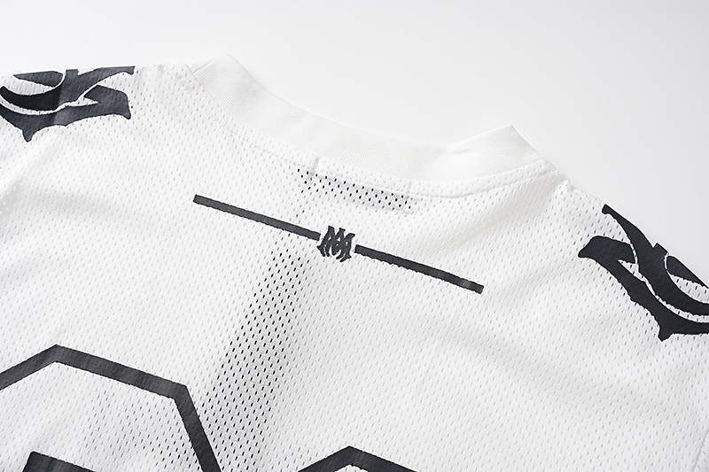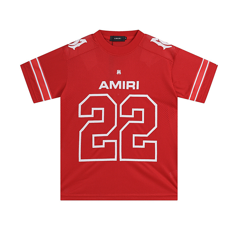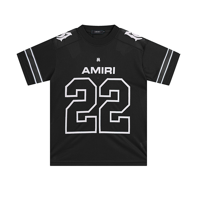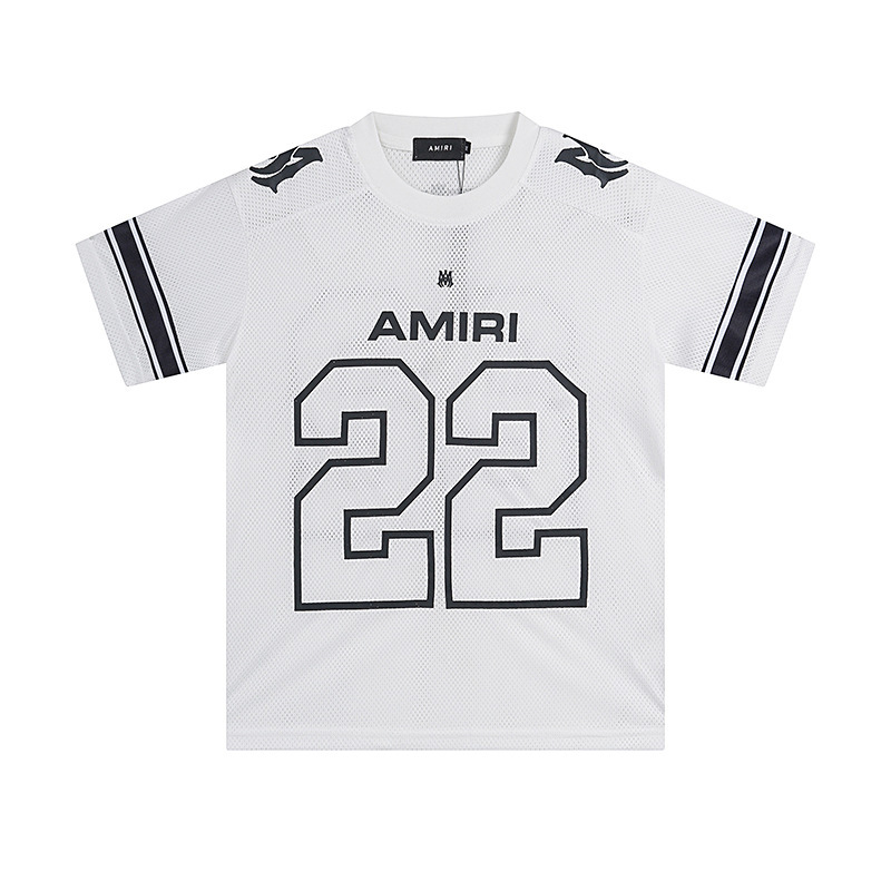 24S 크로스보더 유럽과 미국의 트렌디 브랜드 amri 마이크로 라벨 22 메쉬 통기성 반팔 티셔츠 남성과 여성 하이 스트리트 스포츠 반바지 정장스토어 가기