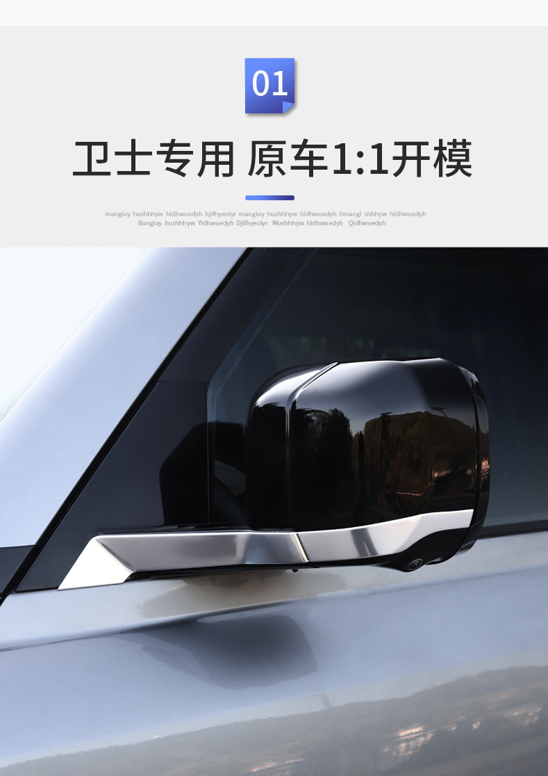 20-24 랜드 로버 새로운 수비수 백미러 트림 스트립 밝은 스트립 안티 스크래치 스트립 미러 스티커 수비수 수정을 위해 적당한