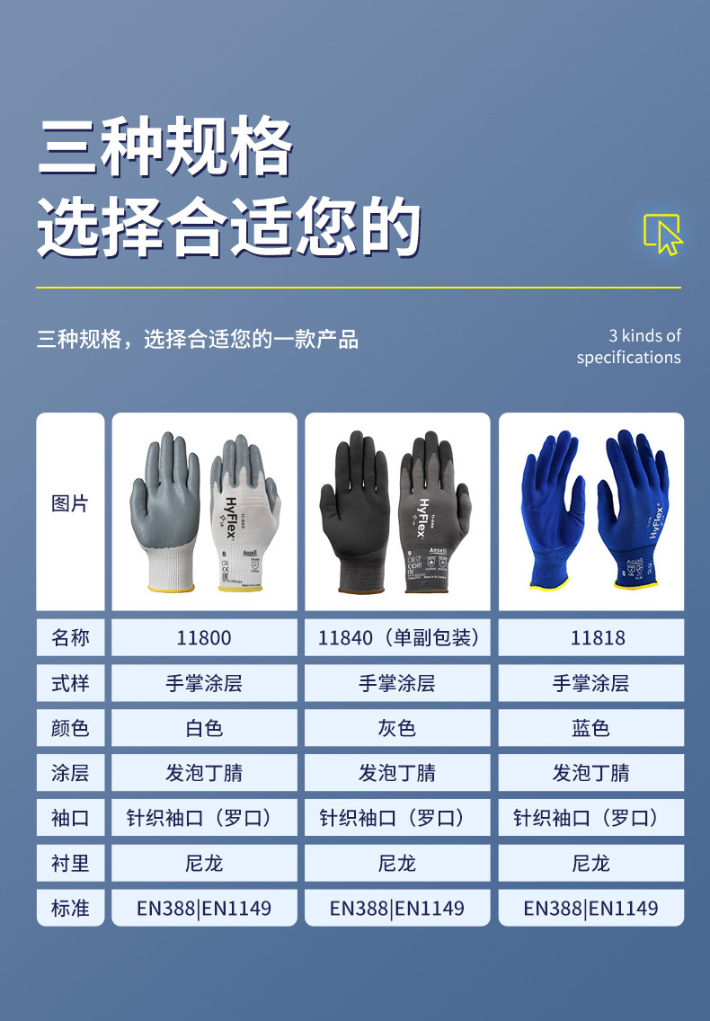 Ansell 11-800 노동 보호 장갑 니트릴 코팅 미끄럼 방지 접착제 내마모성 작업 장갑스토어 가기