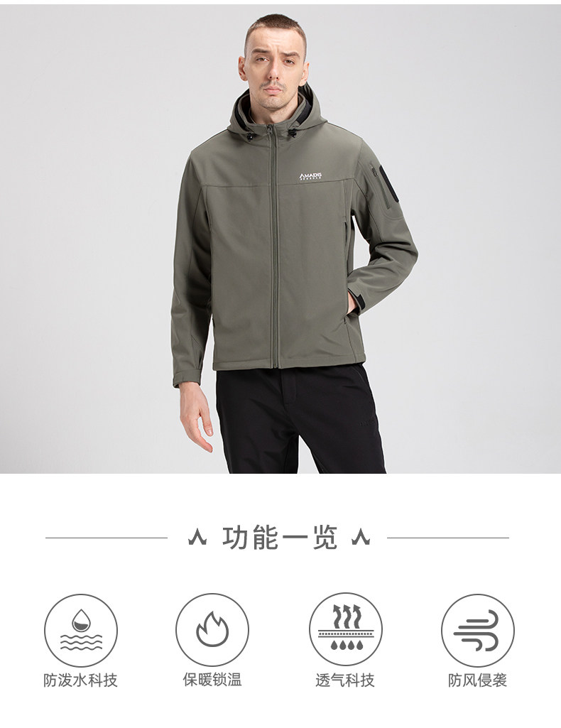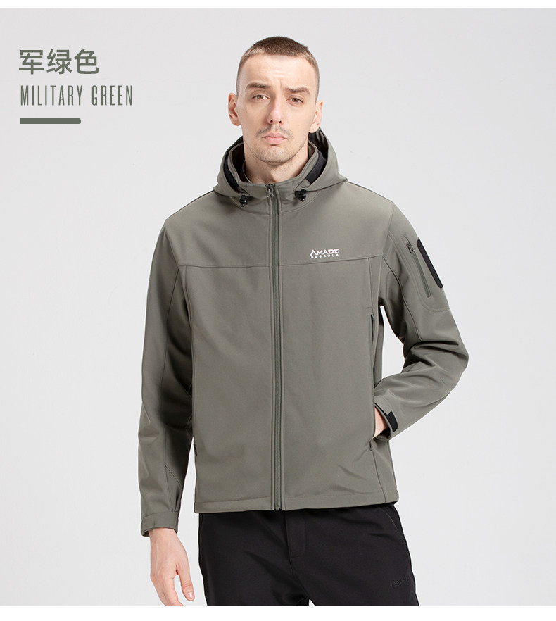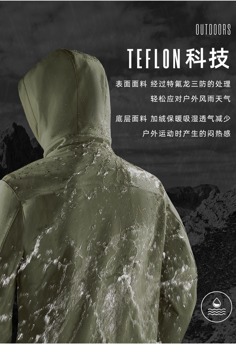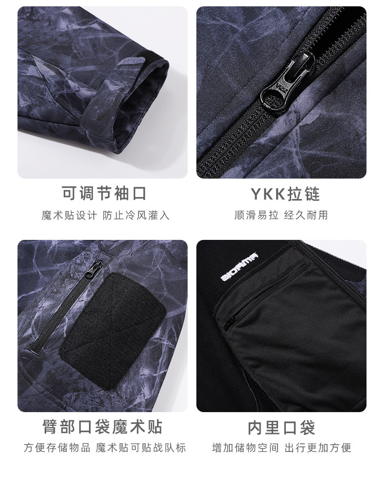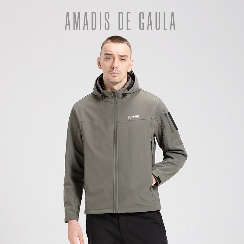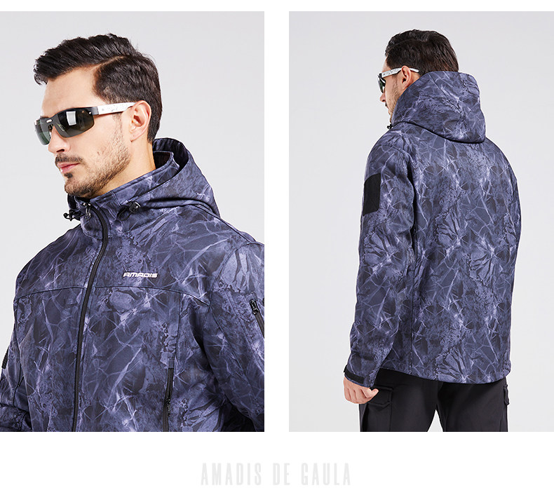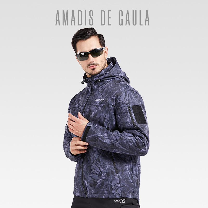 아마데우스 폭행 세트 남성 기모 두꺼운 방수 코트 가을과 겨울 소프트 쉘 위장 등산 세트 낚시 세트