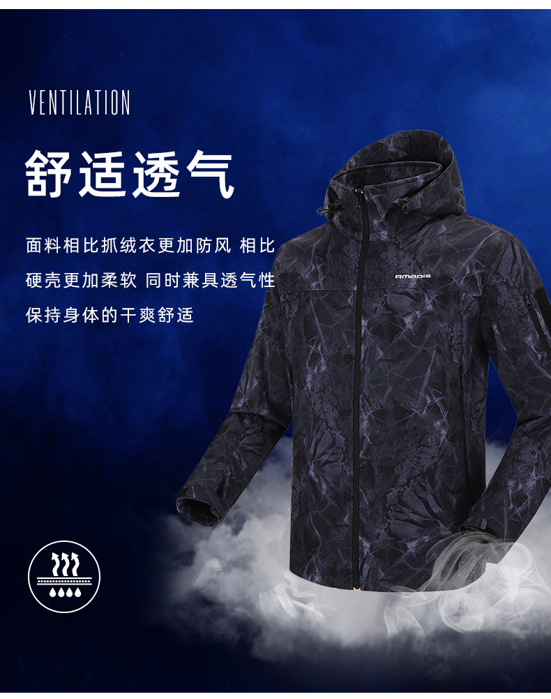 아마데우스 폭행 세트 남성 기모 두꺼운 방수 코트 가을과 겨울 소프트 쉘 위장 등산 세트 낚시 세트스토어 가기