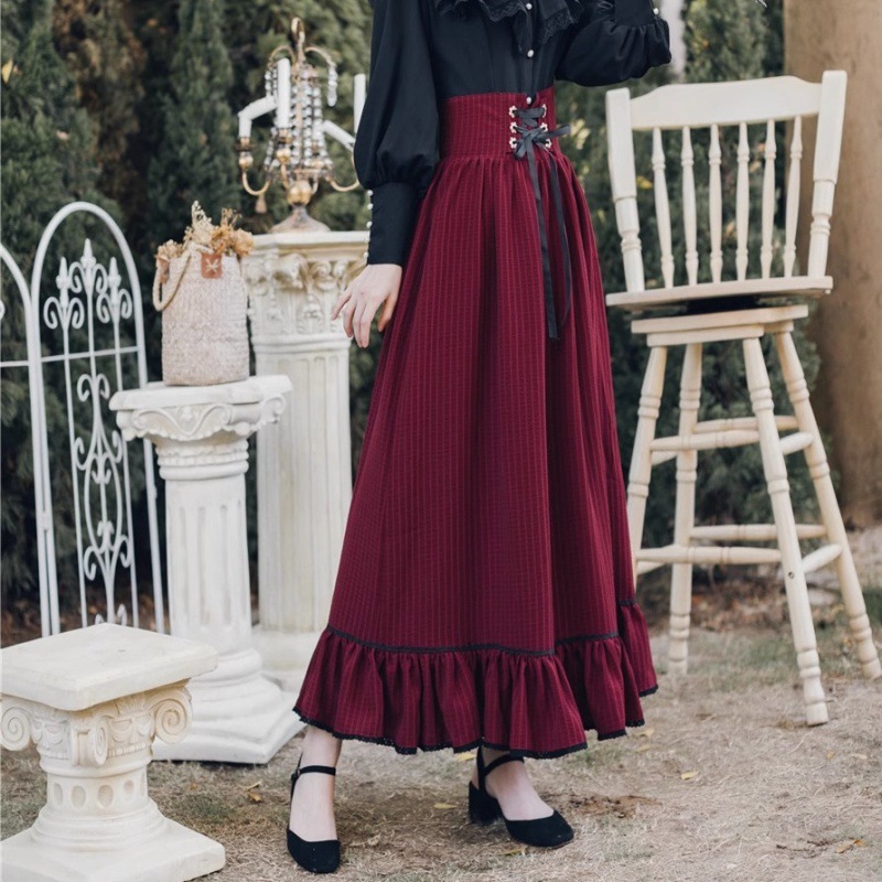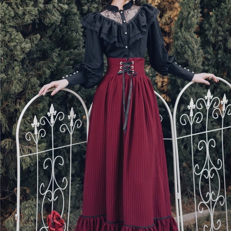 2025 봄 가을 신상 여성복 레트로 궁전 스타일 블랙 셔츠와 롱 스커트 투피스 세트 연회용 드레스스토어 가기