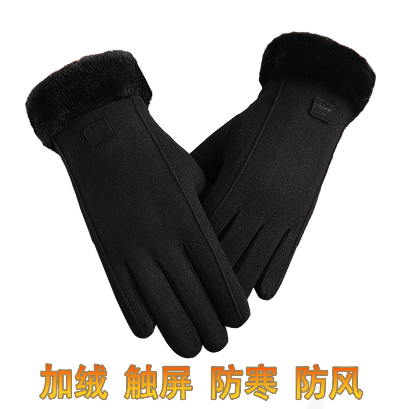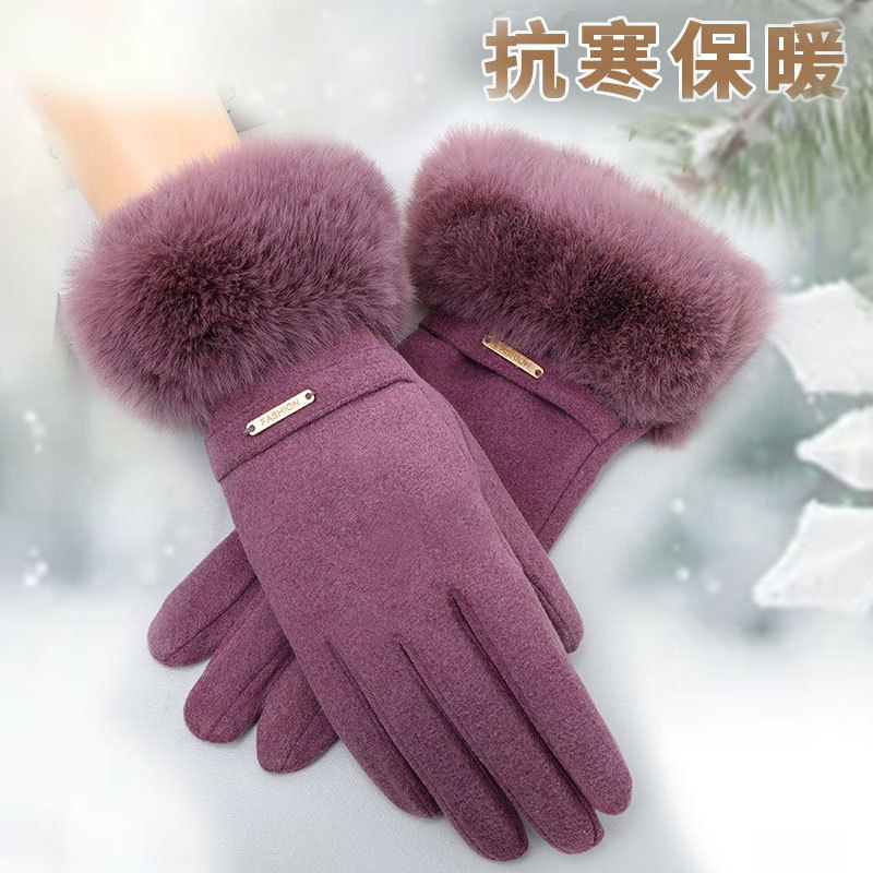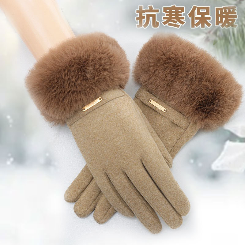 가을, 겨울 플러스 벨벳 여성 따뜻한 장갑 터치 스크린 한국어 버전 야외 독일 벨벳 두꺼운 모조 토끼 모피 입 장갑 도매