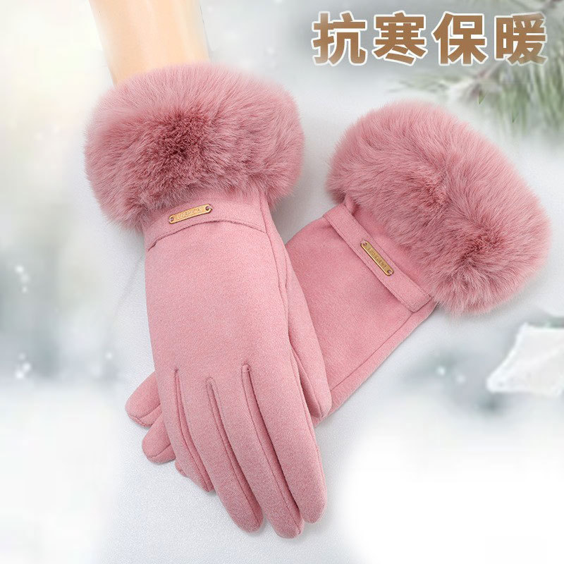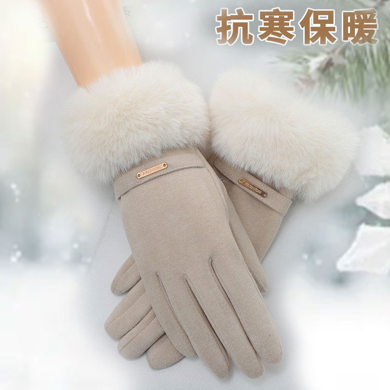 가을, 겨울 플러스 벨벳 여성 따뜻한 장갑 터치 스크린 한국어 버전 야외 독일 벨벳 두꺼운 모조 토끼 모피 입 장갑 도매스토어 가기