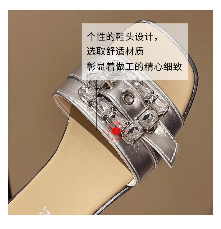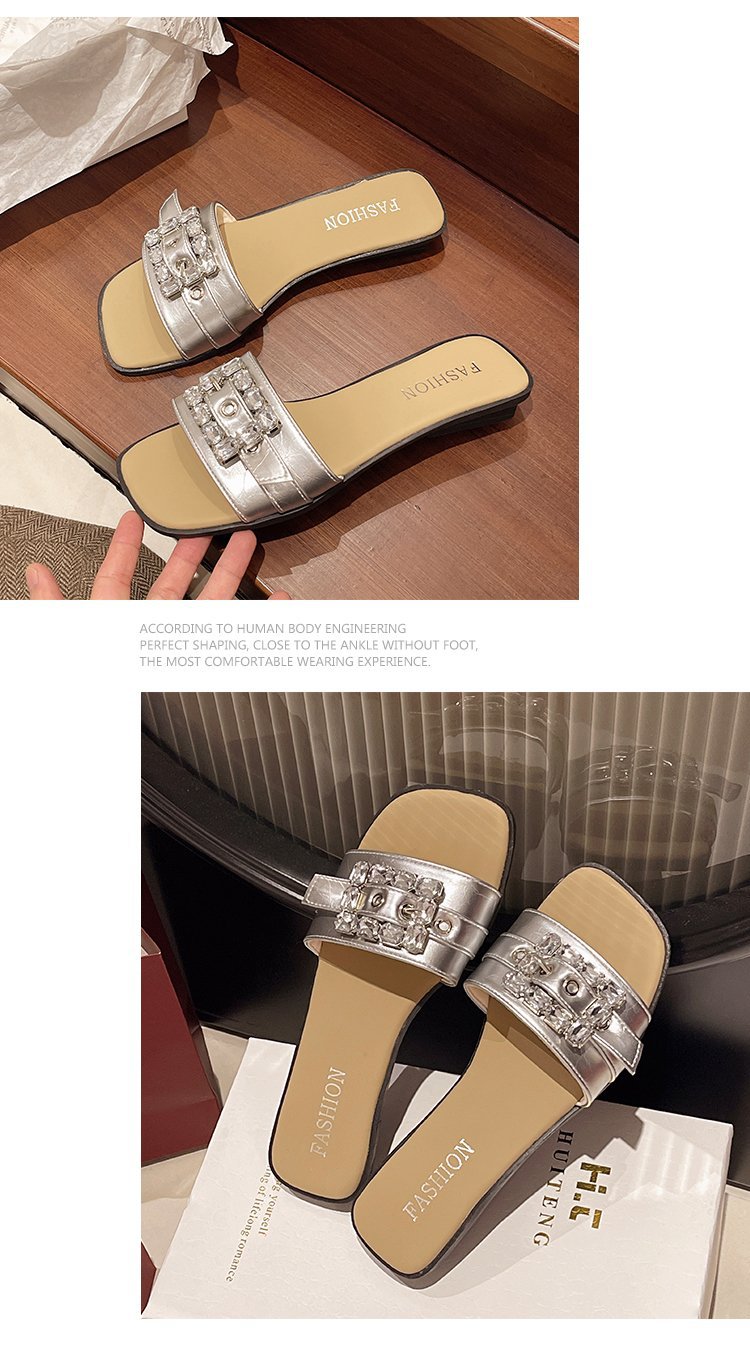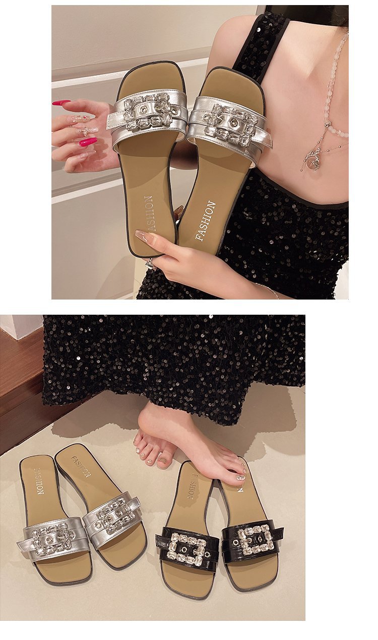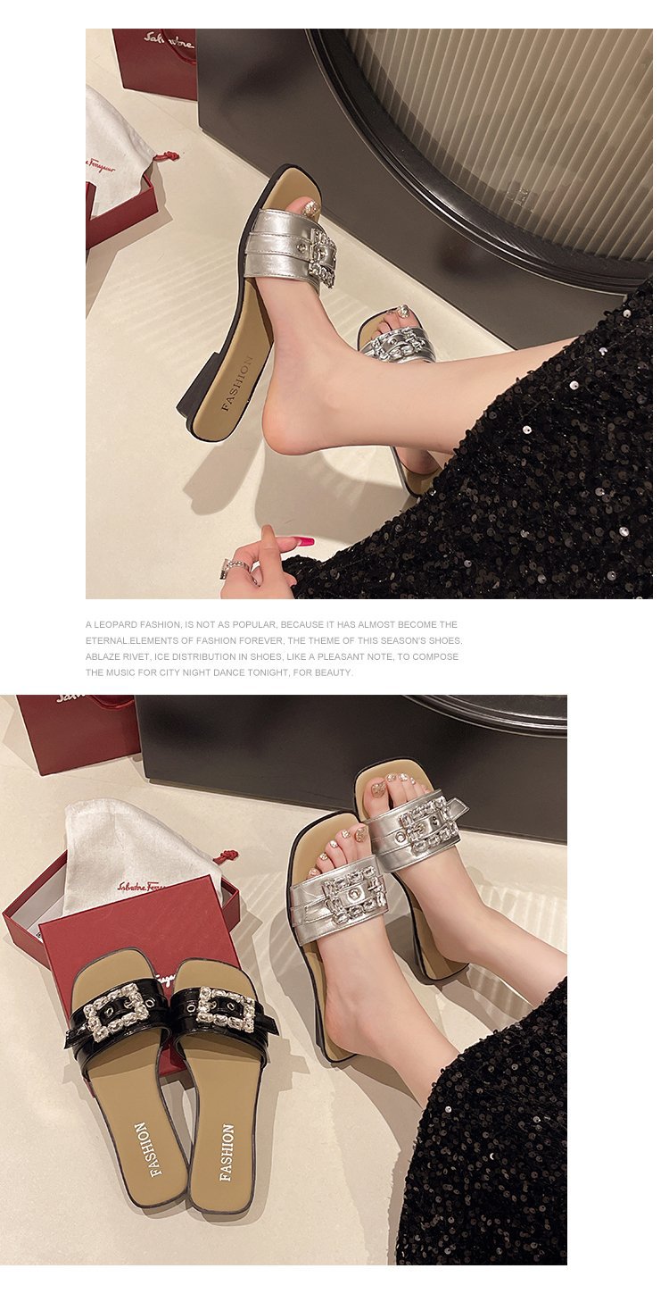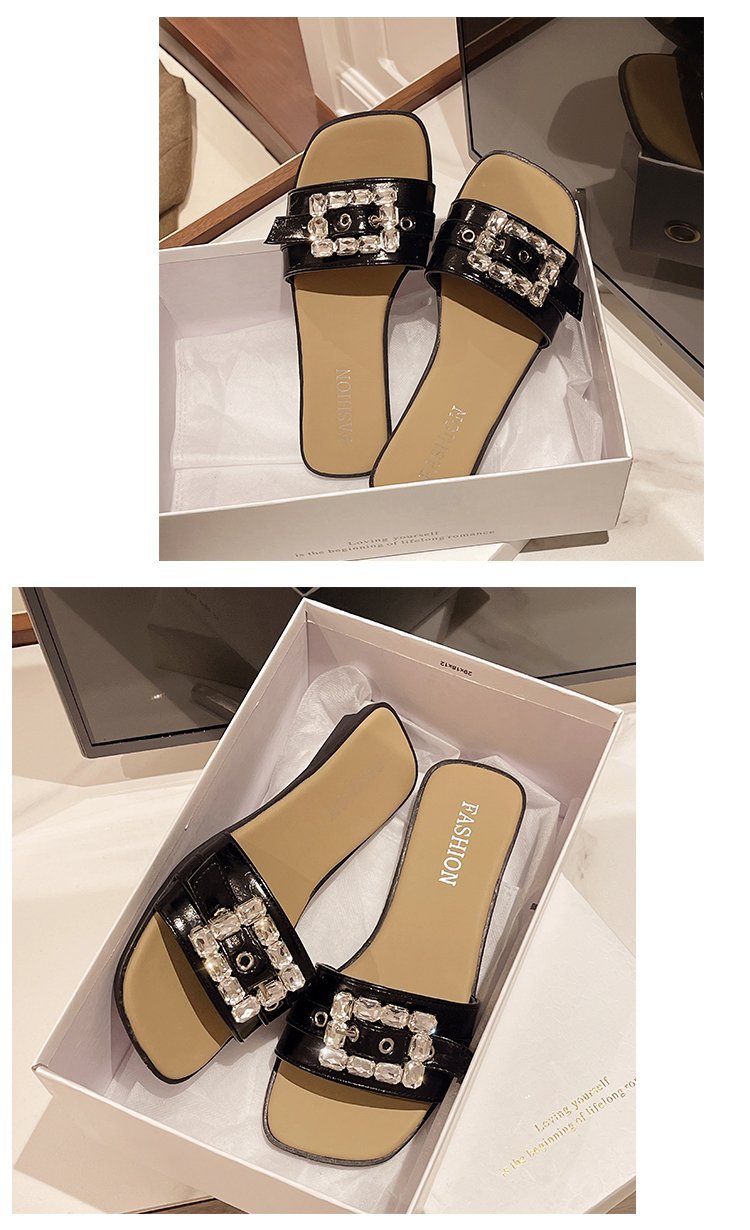 여성을위한 새로운 여름 프랑스 요정 라인 스톤 스퀘어 버클 슬리퍼를 착용 한 여성용 여성용 플랫 하이 엔드 슬리퍼