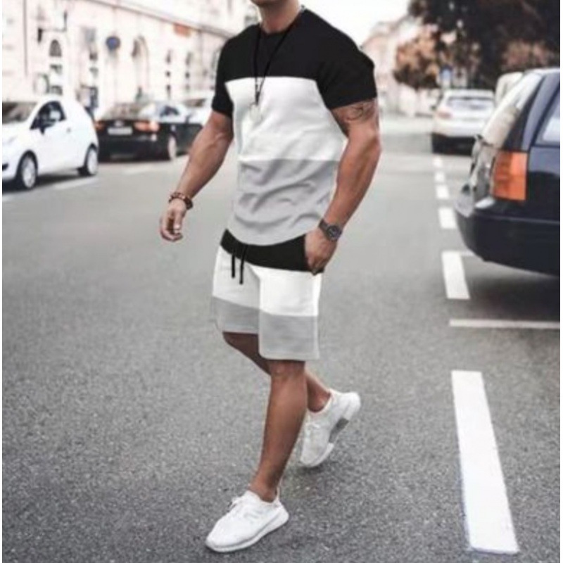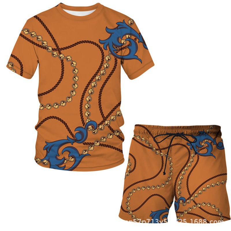 남성 여름 캐주얼 착용 통기성 캐주얼 짧은 소매 세트 DIY 패턴 3D 디지털 인쇄 캐주얼 세트
