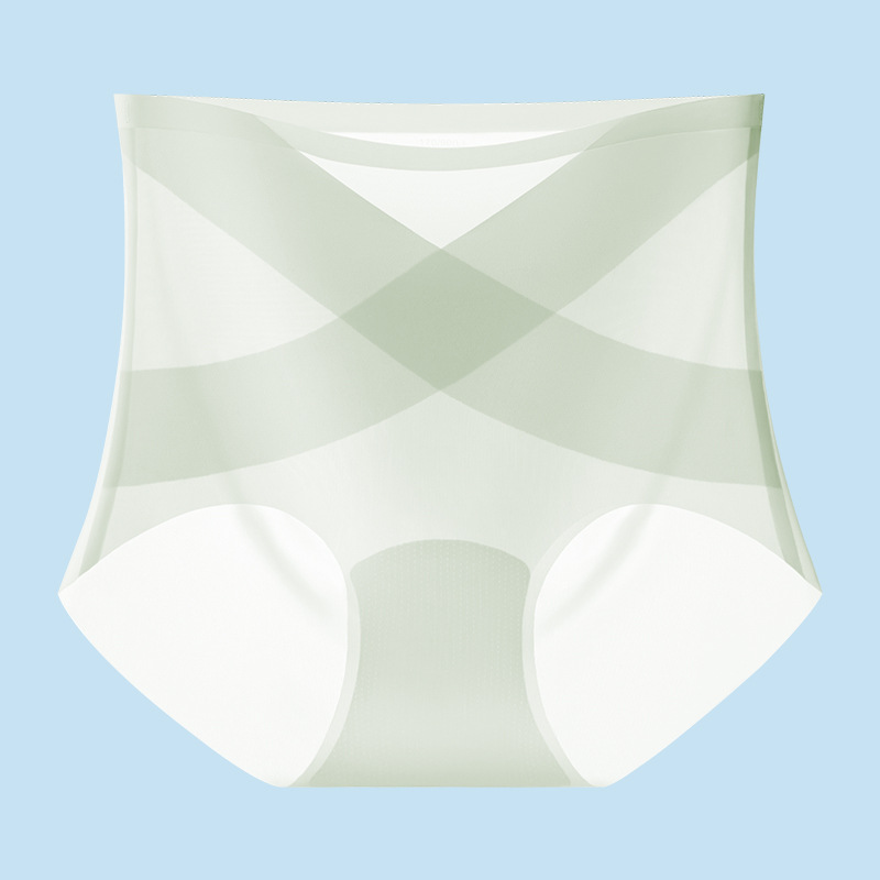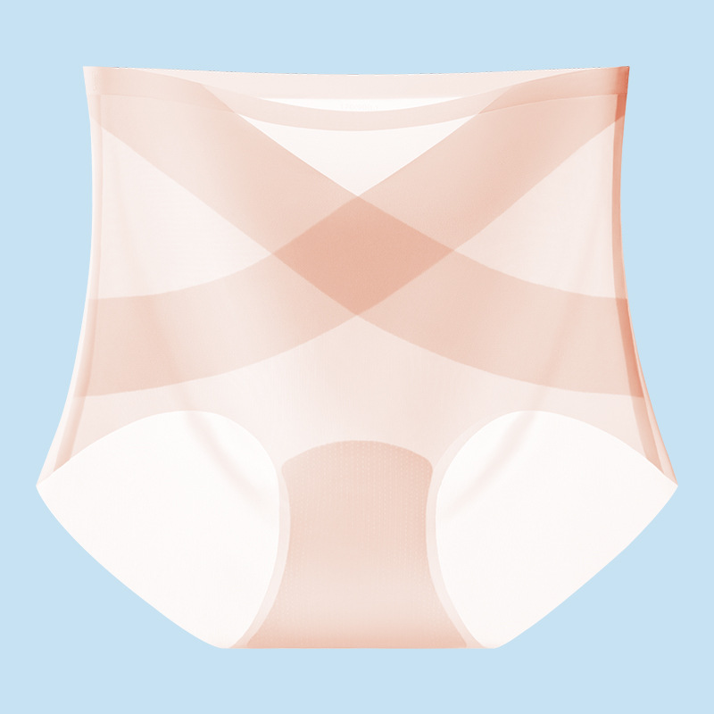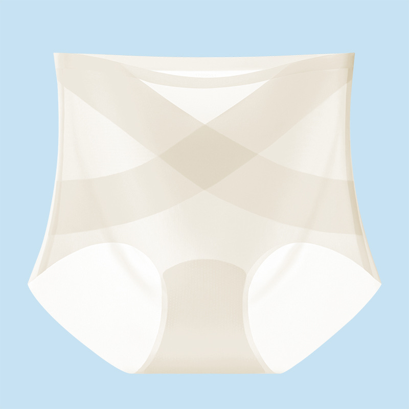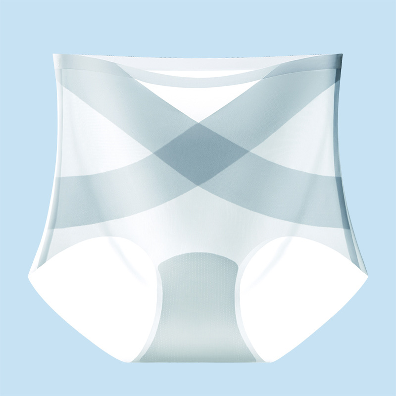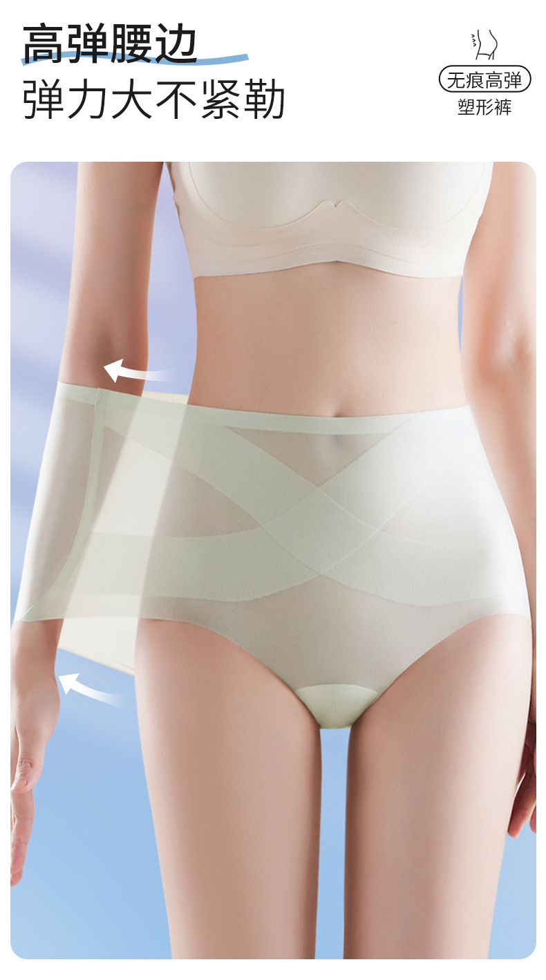 [X 얼음 붕대] 높은 허리 추적 없는 속옷 여성 복부 턱 작은 배 몸 모양 여름 얇은 얼음 실크 브리프