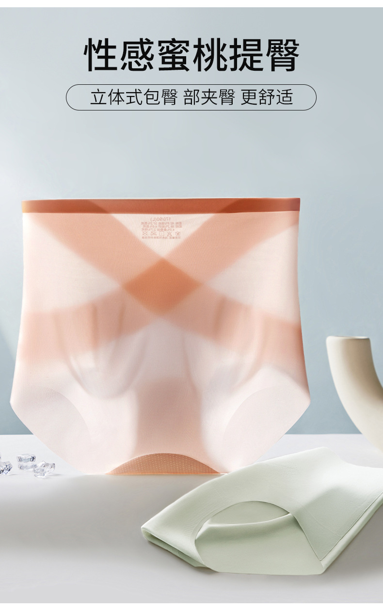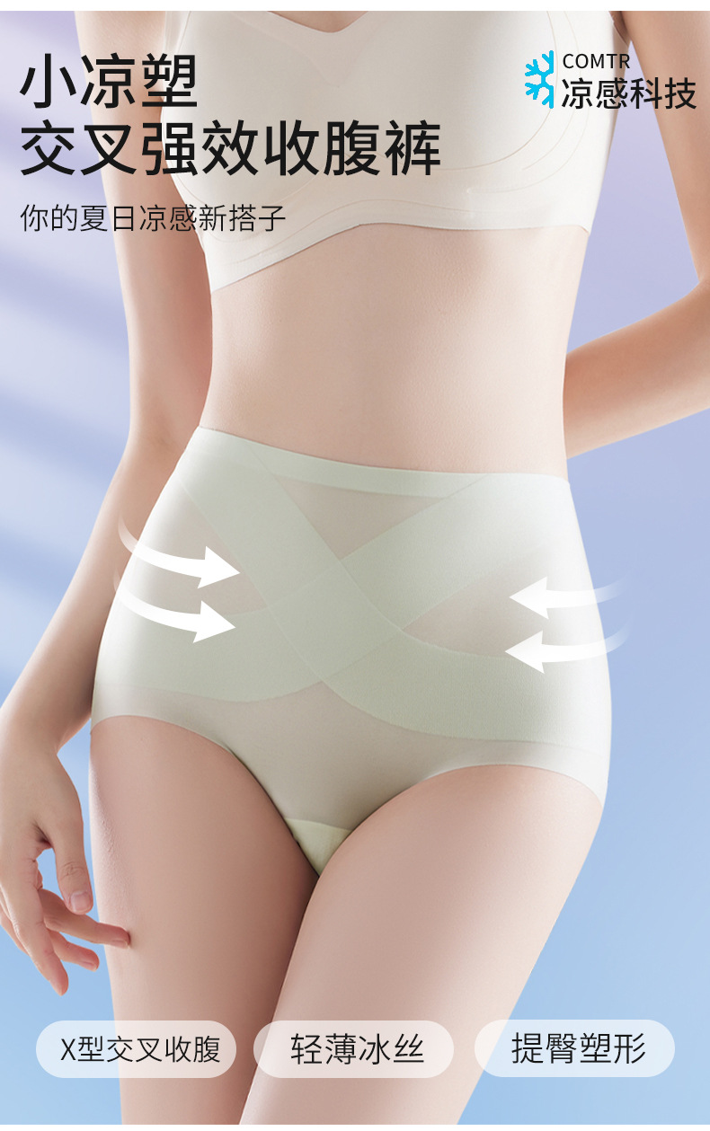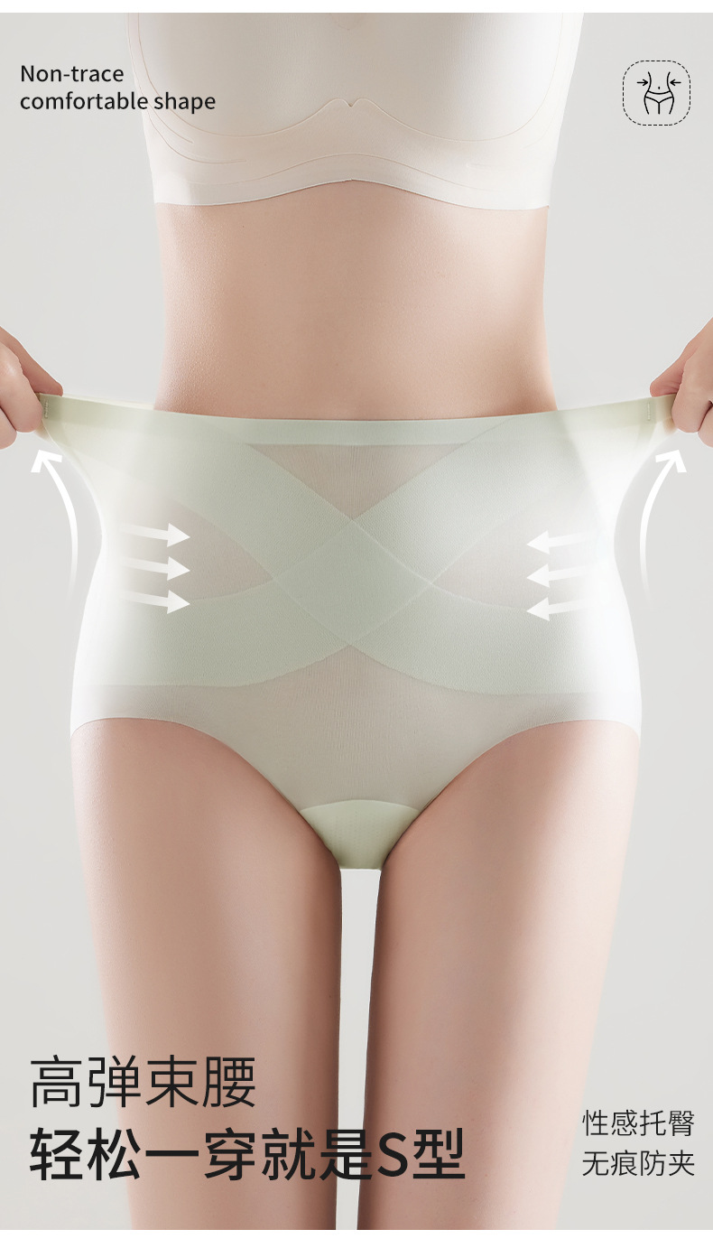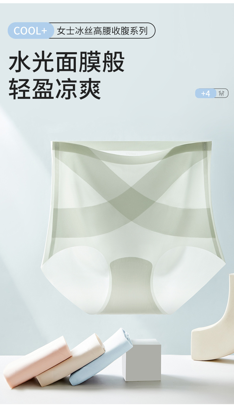 [X 얼음 붕대] 높은 허리 추적 없는 속옷 여성 복부 턱 작은 배 몸 모양 여름 얇은 얼음 실크 브리프