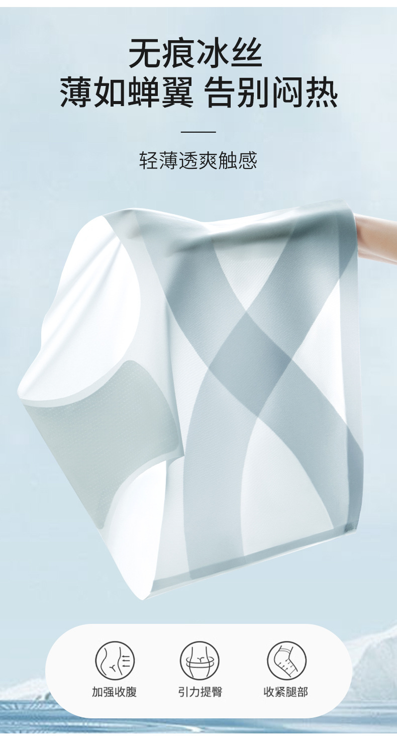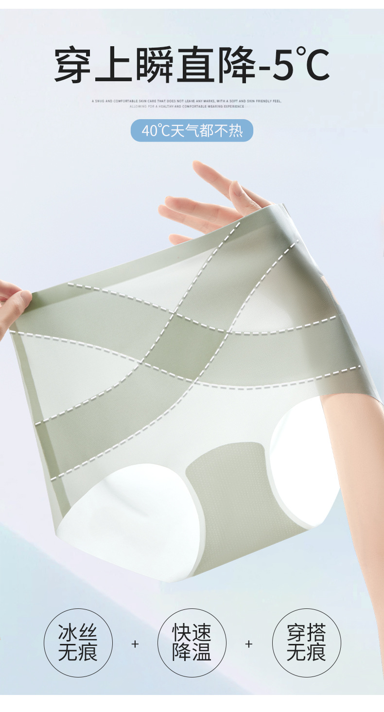 [X 얼음 붕대] 높은 허리 추적 없는 속옷 여성 복부 턱 작은 배 몸 모양 여름 얇은 얼음 실크 브리프스토어 가기