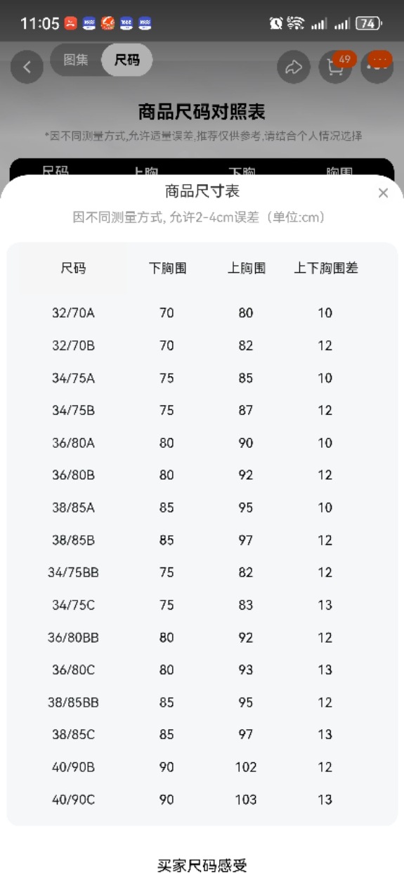 • XL사이즈 38/85ABC (1.5cm정도 모아서 컵업)