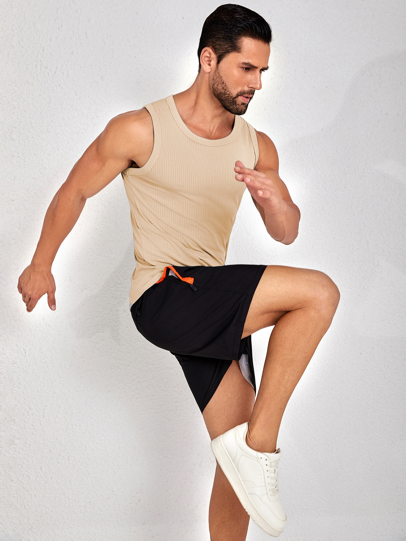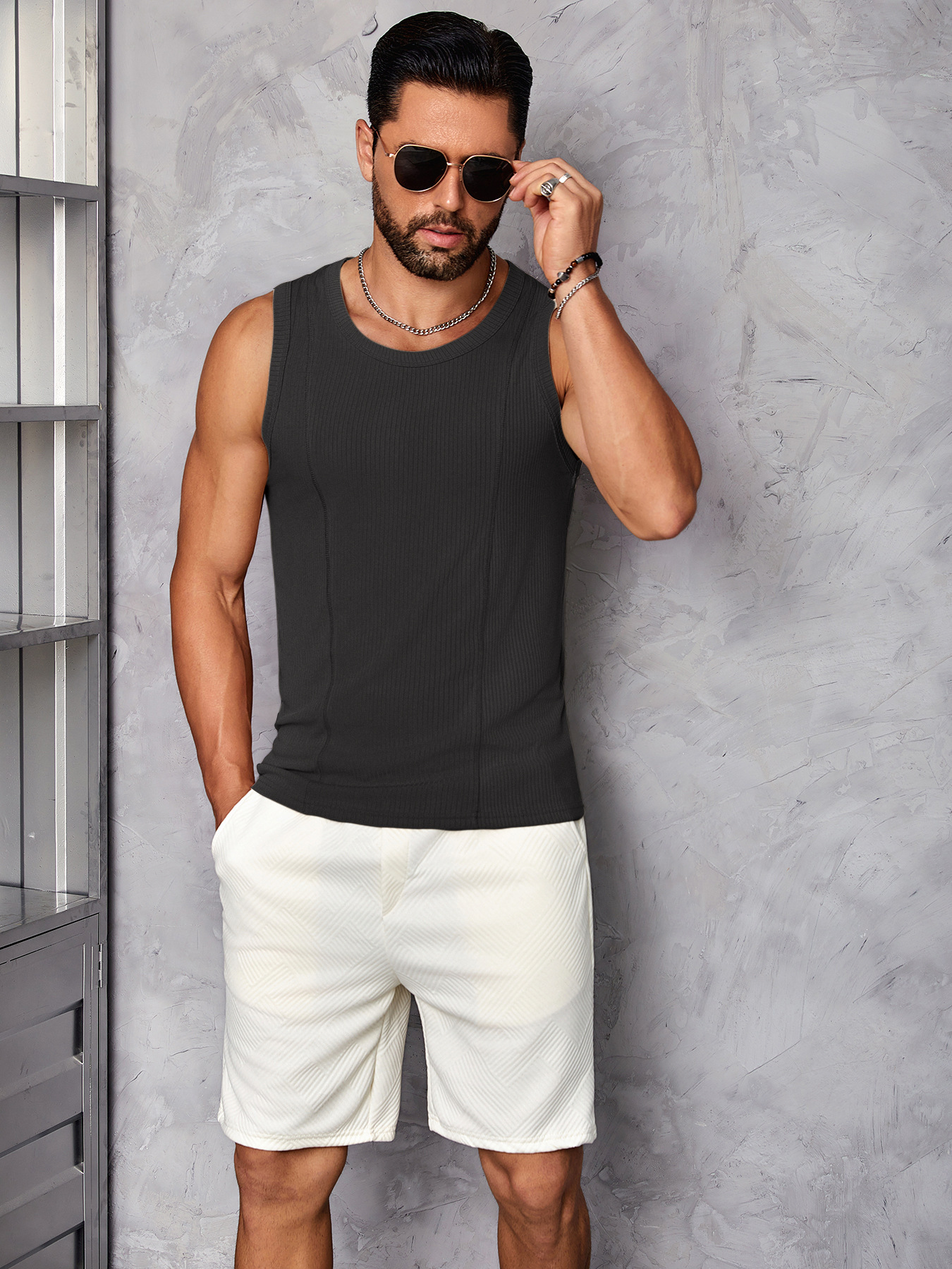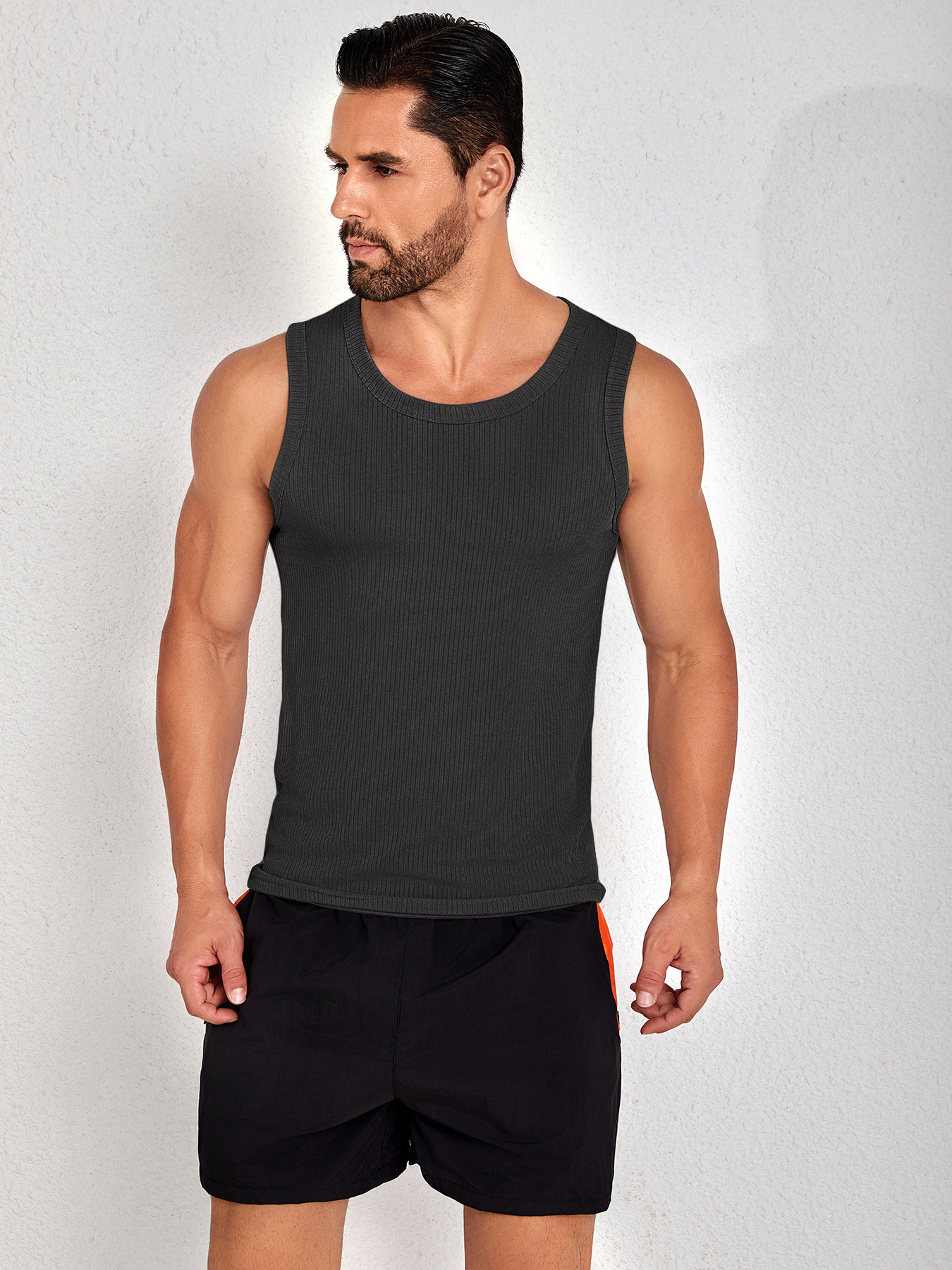 콤비드 텍스처 대형 조끼 슬림 핏 근육 빠른 건조 스포츠 레저 피트니스 의류 허리 코트 라운드 넥 민소매 티셔츠 남성용스토어 가기
