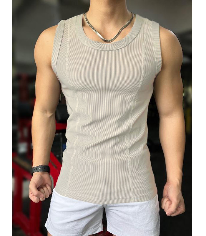 콤비드 텍스처 대형 조끼 슬림 핏 근육 빠른 건조 스포츠 레저 피트니스 의류 허리 코트 라운드 넥 민소매 티셔츠 남성용