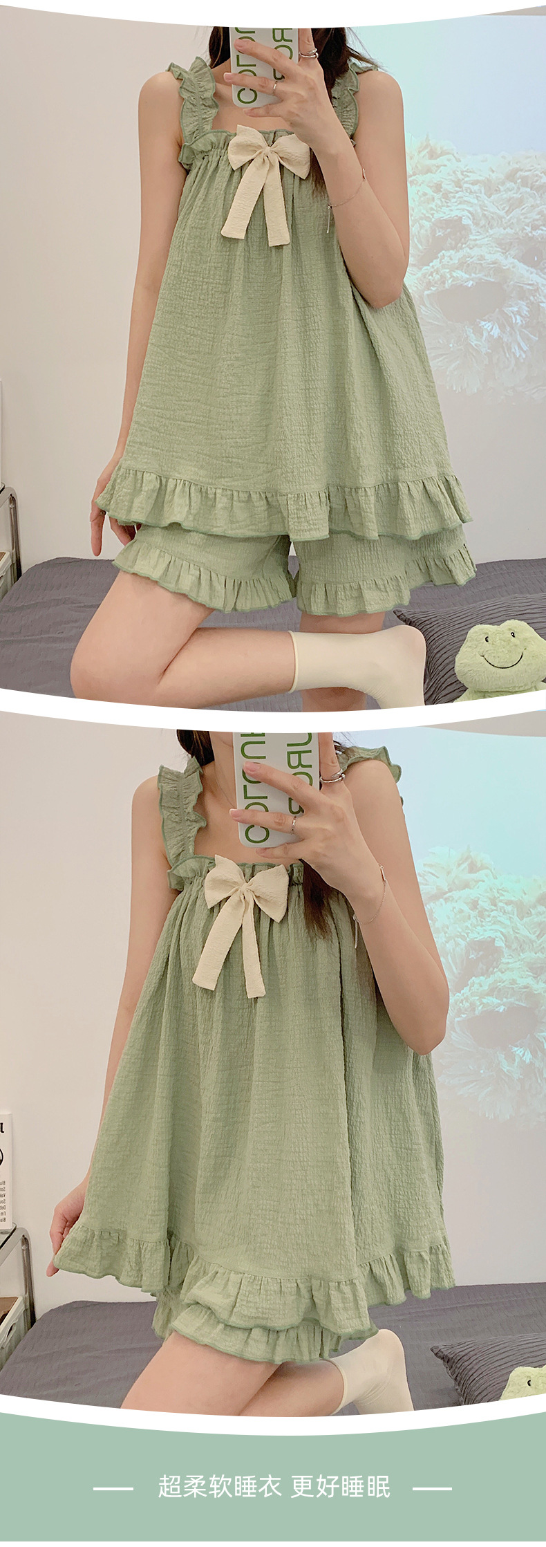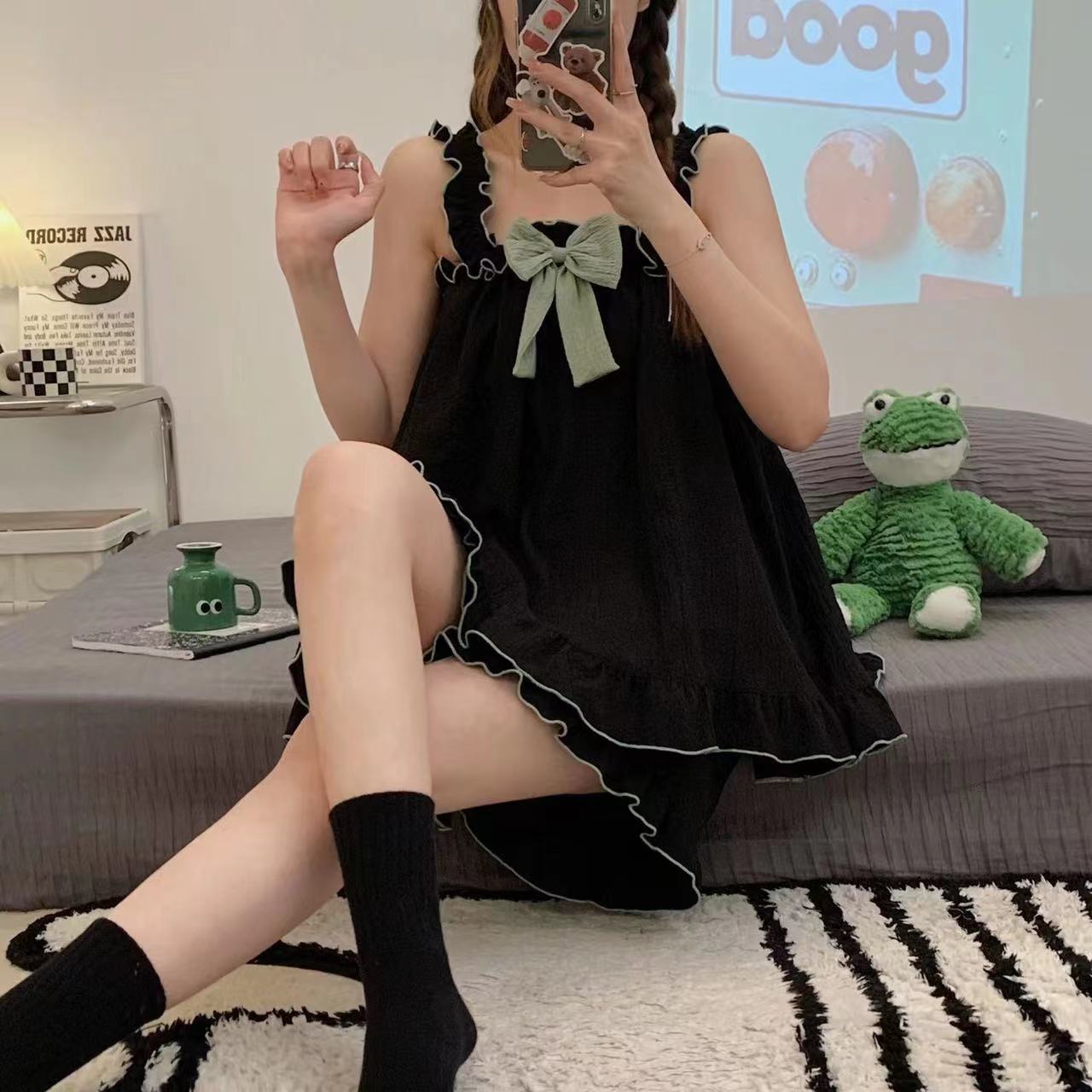 한국 핫 셀러 여름 반바지, 가슴 패드 활 소녀 한국 달콤한 느슨한 의상 홈 옷