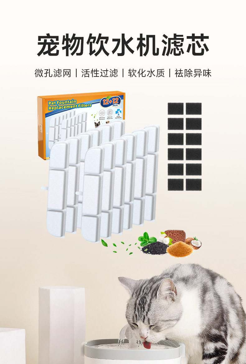 활성탄 애완 동물 물 디스펜서 필터 요소 고양이 필터 면 고양이와 개 필터 코코넛 쉘 필터 필터 스크린 큰 수량 우수한 가격스토어 가기
