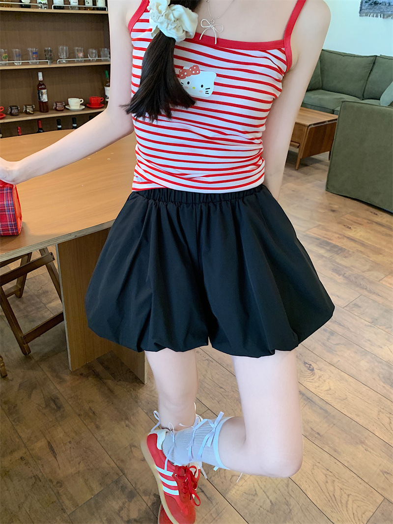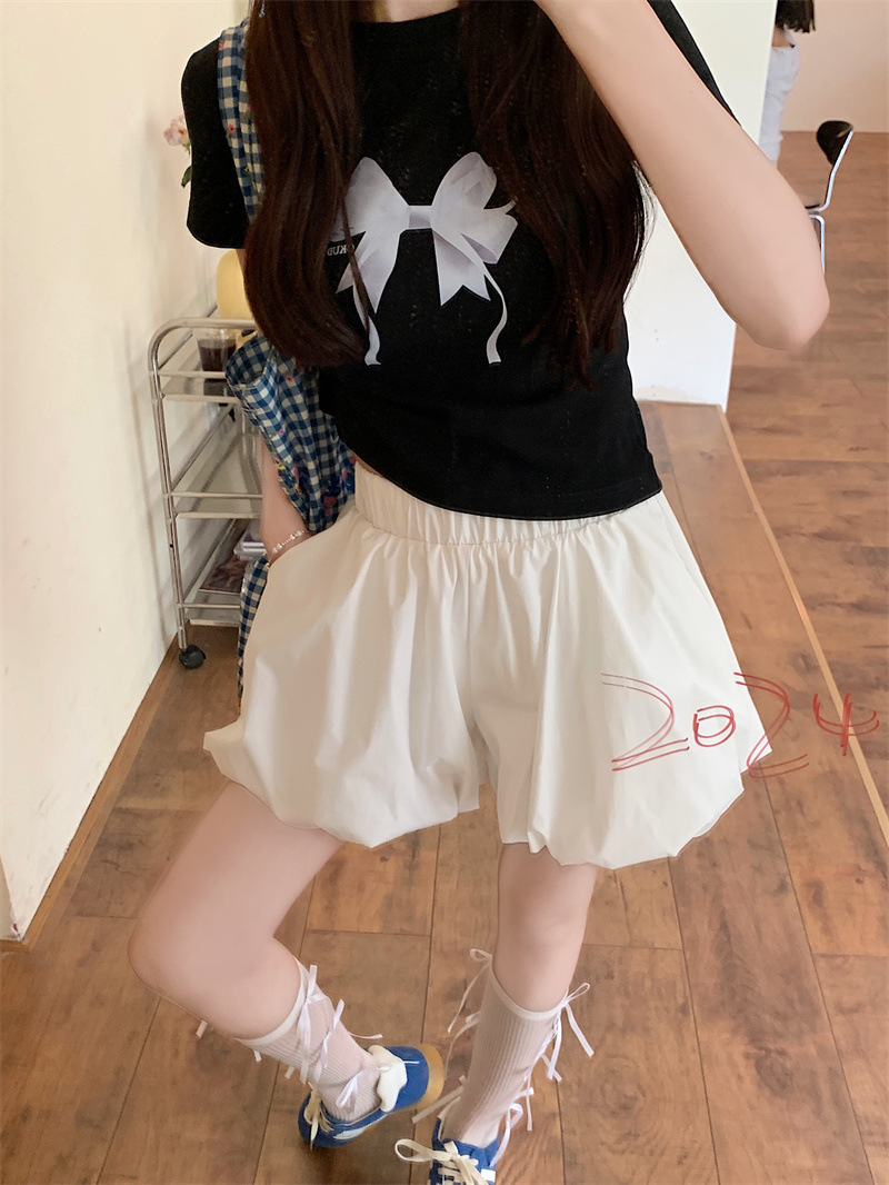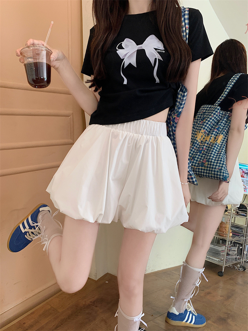 랜턴 버드 반바지 여성용 여름 얇은 일본 스타일 달콤한 A 자 모양의 넓은 다리 바지 느슨한 캐주얼 바지