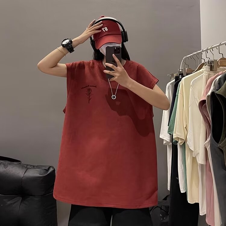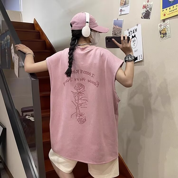 미국식 Deerskin 양털 인쇄 조끼 남자와 여자의 스포츠 느슨한 민소매 티셔츠 Summer Ins 패션 브랜드 Waistcoat Base T