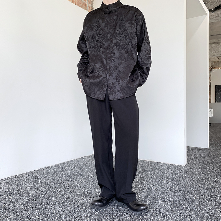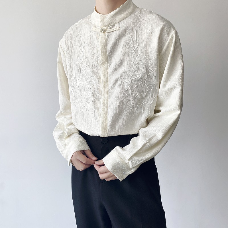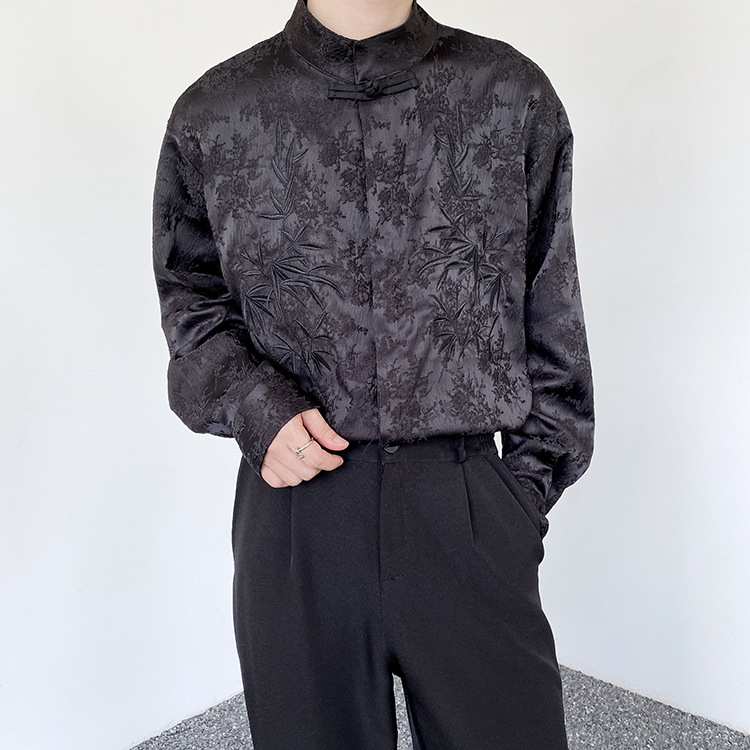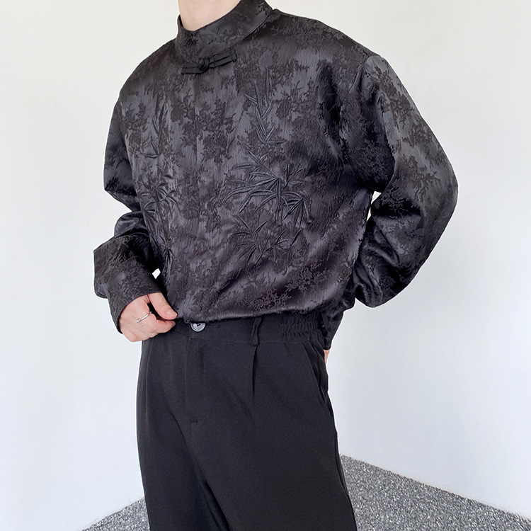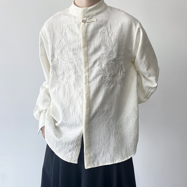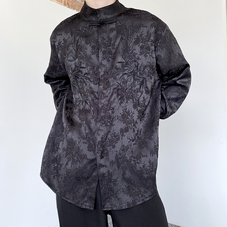 새로운 중국 스타일 국가 스타일 셔츠 남자의 2024 새로운 가을 하이 엔드 스타일 수직 칼라 버클 탑 자수 새로운 스타일 잘 생긴 긴 소매스토어 가기