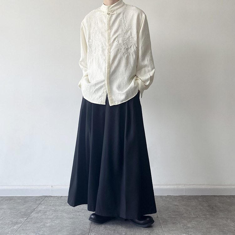 새로운 중국 스타일 국가 스타일 셔츠 남자의 2024 새로운 가을 하이 엔드 스타일 수직 칼라 버클 탑 자수 새로운 스타일 잘 생긴 긴 소매