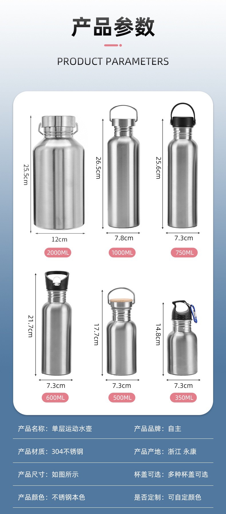 2L 싱글 레이어 아메리칸 스타일 큰 입 304 스테인레스 스틸 등산 피트니스 야외 스포츠 주전자 와인 냄비 기름 저장 탱크