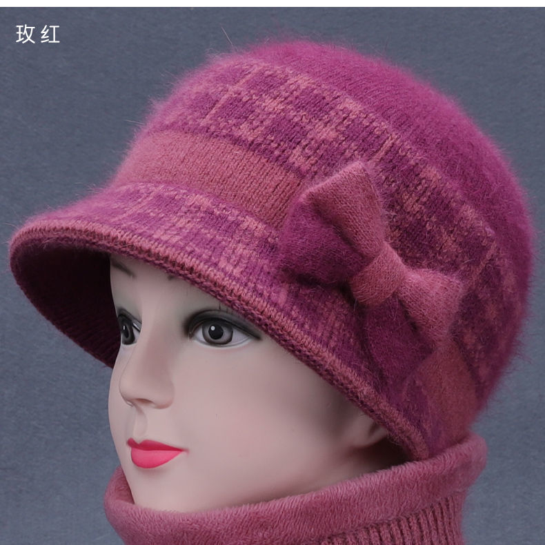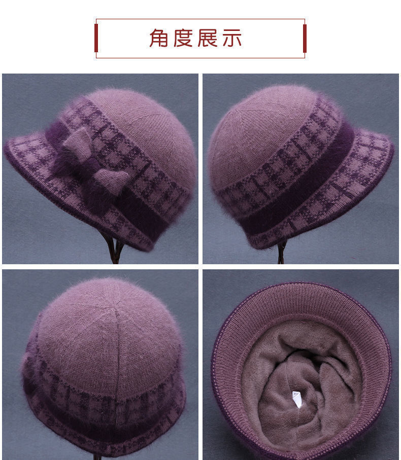 중년 및 노인 기모 두꺼운 양모 모자 겨울 새로운 어머니 모자 숙녀 활 따뜻한 큰 챙이 니트 모자
