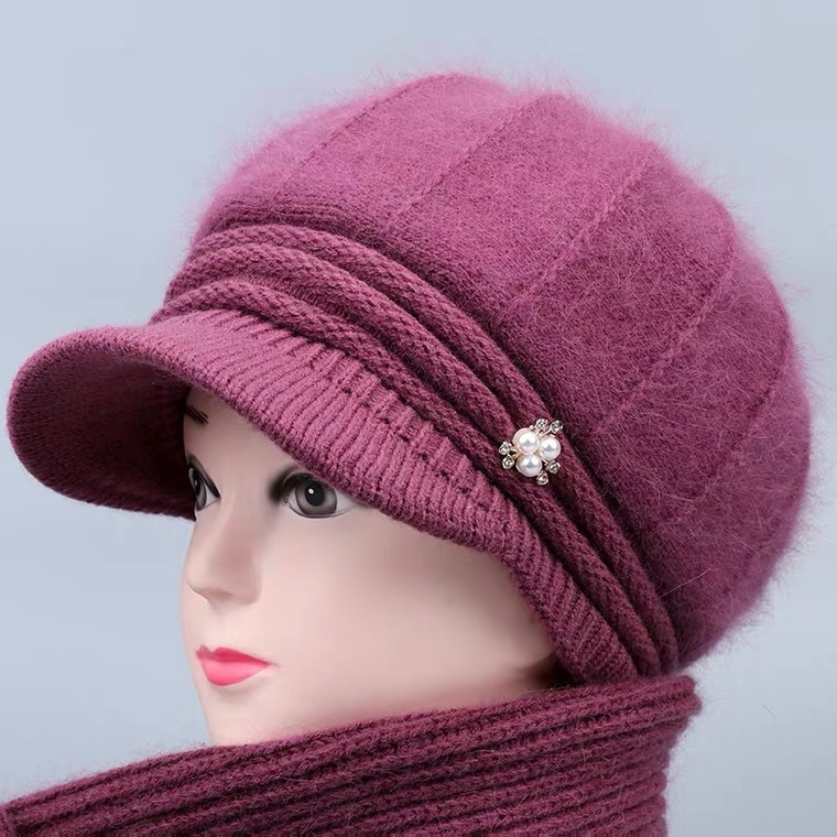 중년 및 노인 기모 두꺼운 양모 모자 겨울 새로운 어머니 모자 숙녀 활 따뜻한 큰 챙이 니트 모자스토어 가기