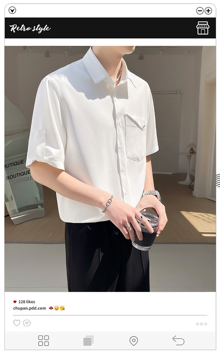가벼운 성숙한 스타일 여름 아이스 실크 반팔 셔츠 남성용 화이트 캐주얼 느슨한 다림질 고급 스타일 셔츠 반소매 트렌디 남성용스토어 가기