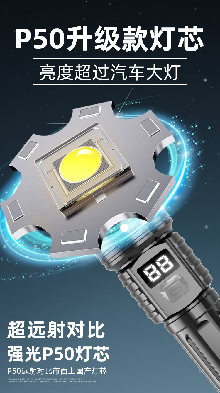 국경 간 P50 손전등 강한 빛 고출력 충전식 긴 내구성 야외 순찰 자기 방어 작업 조명 손전등스토어 가기