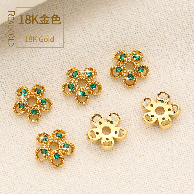 18k 금도금 에메랄드 지르콘 꽃 홀더 5 꽃잎 꽃 홀더 비드 캡 비드 홀더 diy 팔찌 목걸이 액세서리스토어 가기