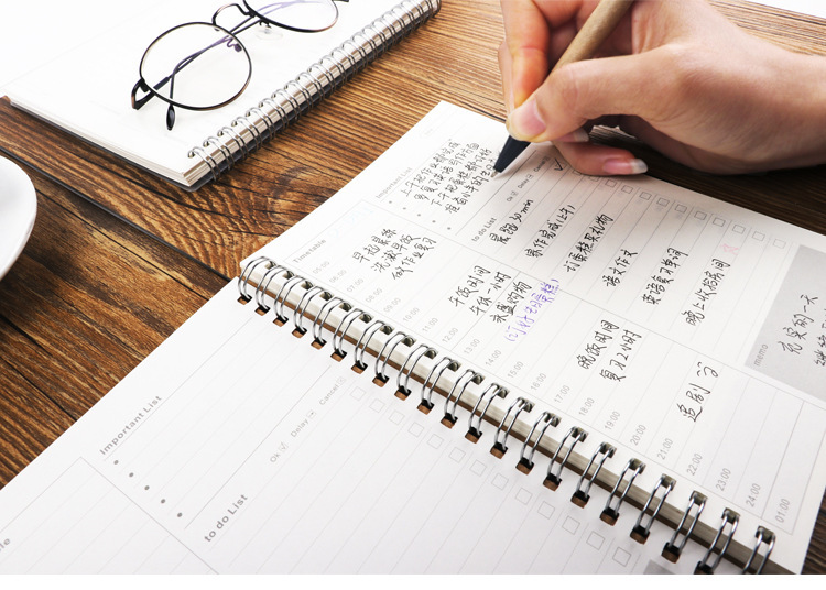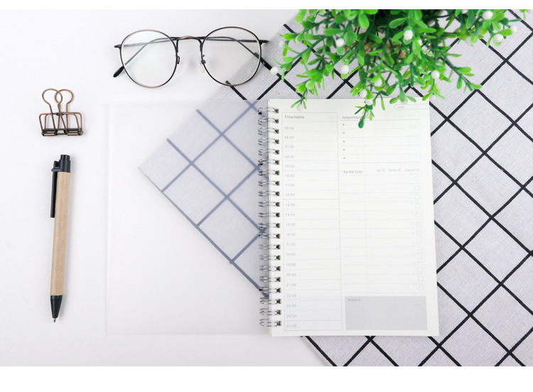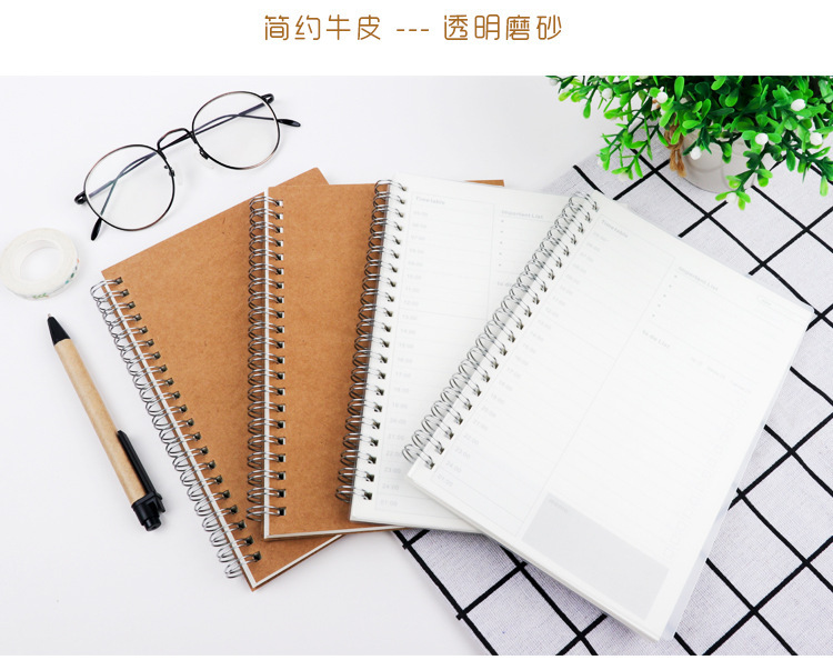주간 계획 도서 간단한 A5 시간 관리 코일 자체 훈련 핀 스케줄 PP 반투명 커버 핸드 북스토어 가기