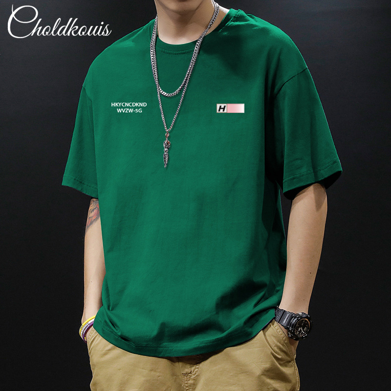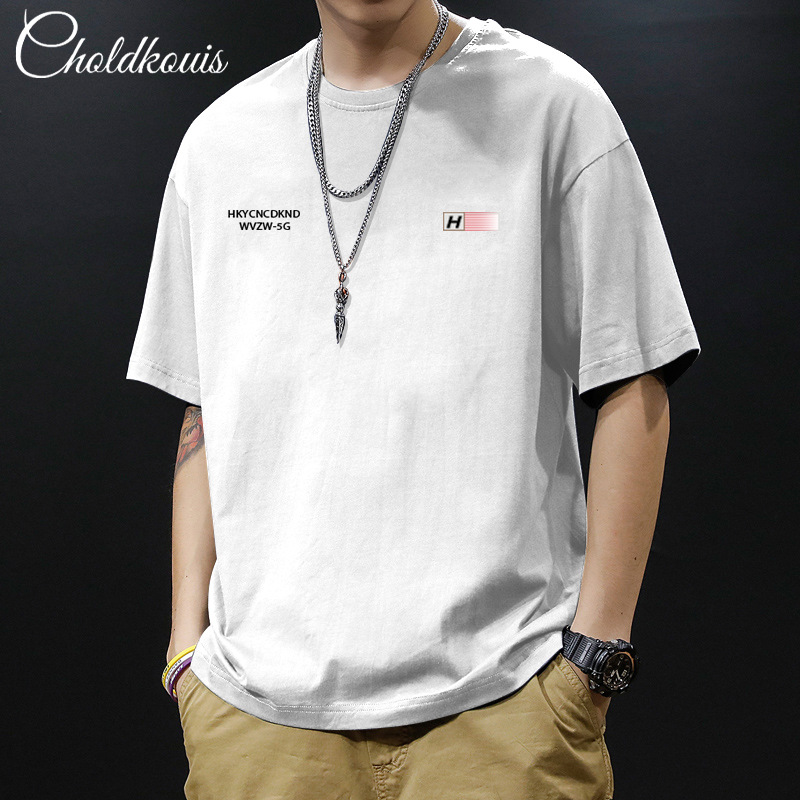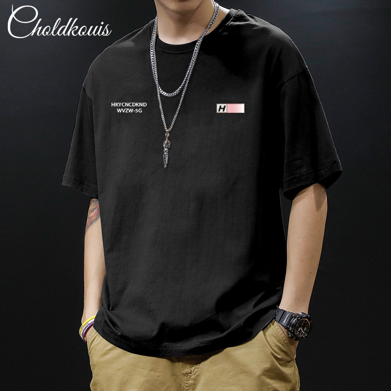 여름 헤비 코튼 반팔 티셔츠 남자와 여자의 느슨한 올 매치 간단한 BF 스타일 캐주얼 홍콩 스타일 커플 패션 탑스토어 가기