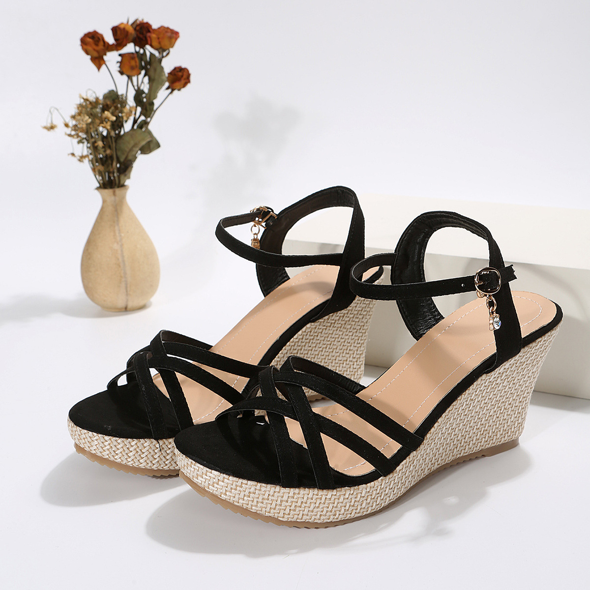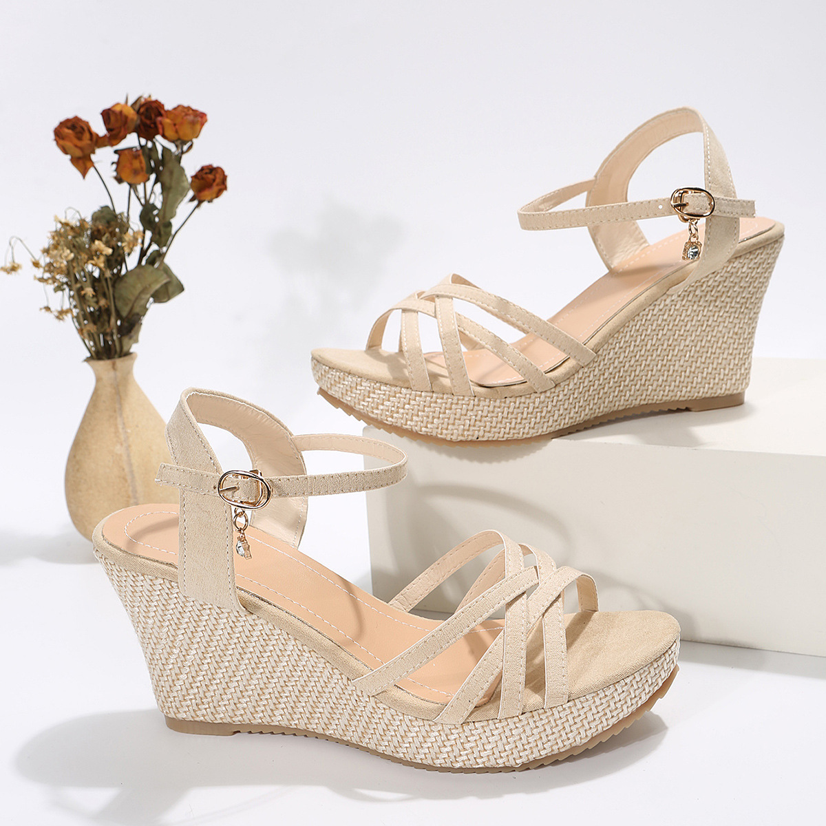 웨지 샌들 여성 2024 여름 새로운 스타일 플랫폼 두꺼운 바닥 방수 플랫폼 하이힐 생선 발가락 여성 신발 대외 무역 대형 신발스토어 가기