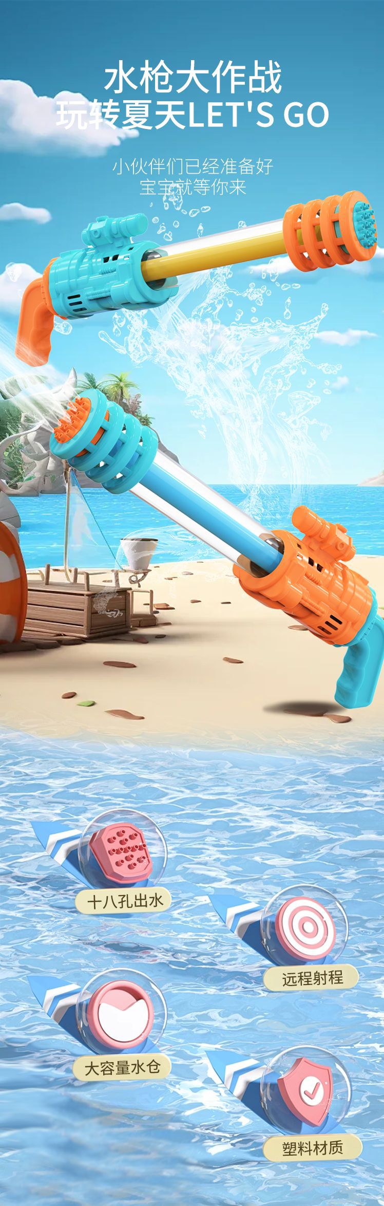 개틀 링 워터 건 다공성 대용량 풀아웃 여름 표류 물 싸움 스톨 장난감 소년 해변 물 놀이