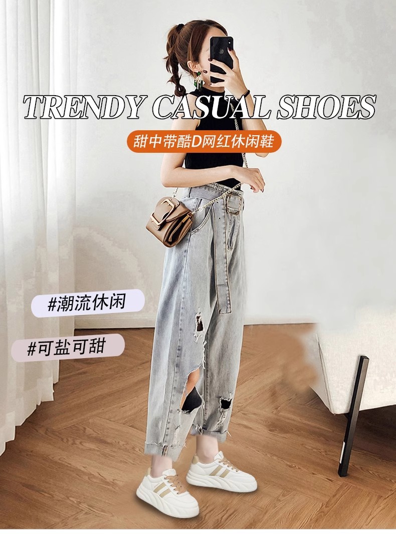 폭발성 베이지 새 화이트 신발 여성 2023 봄과 여름 플랫 올 매치 소프트 하단 통기성 캐주얼 스포츠 스케이트 신발스토어 가기