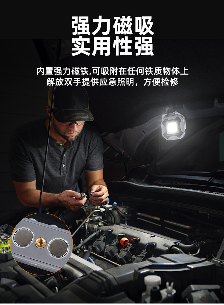 새로운 야외 다기능 COB 자기 흡입 자동 수리 조명 작업 조명 캠핑 라이트 TypeC 충전식 모든 지형 야외 조명스토어 가기