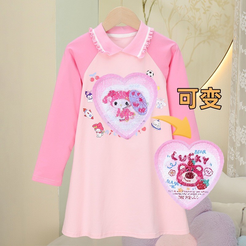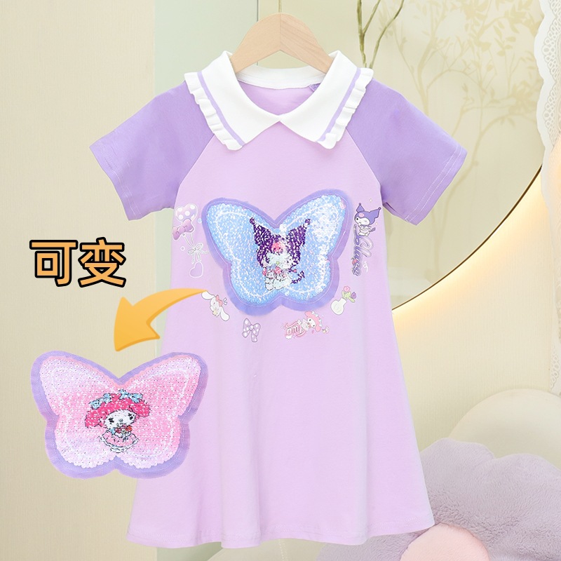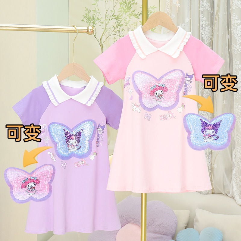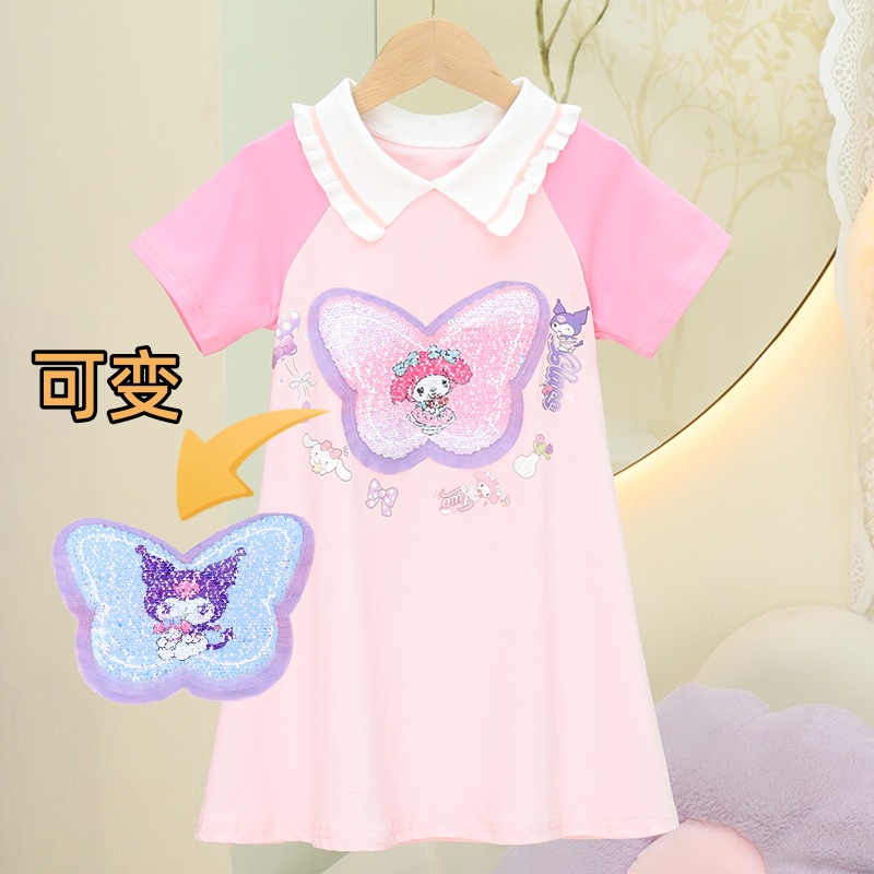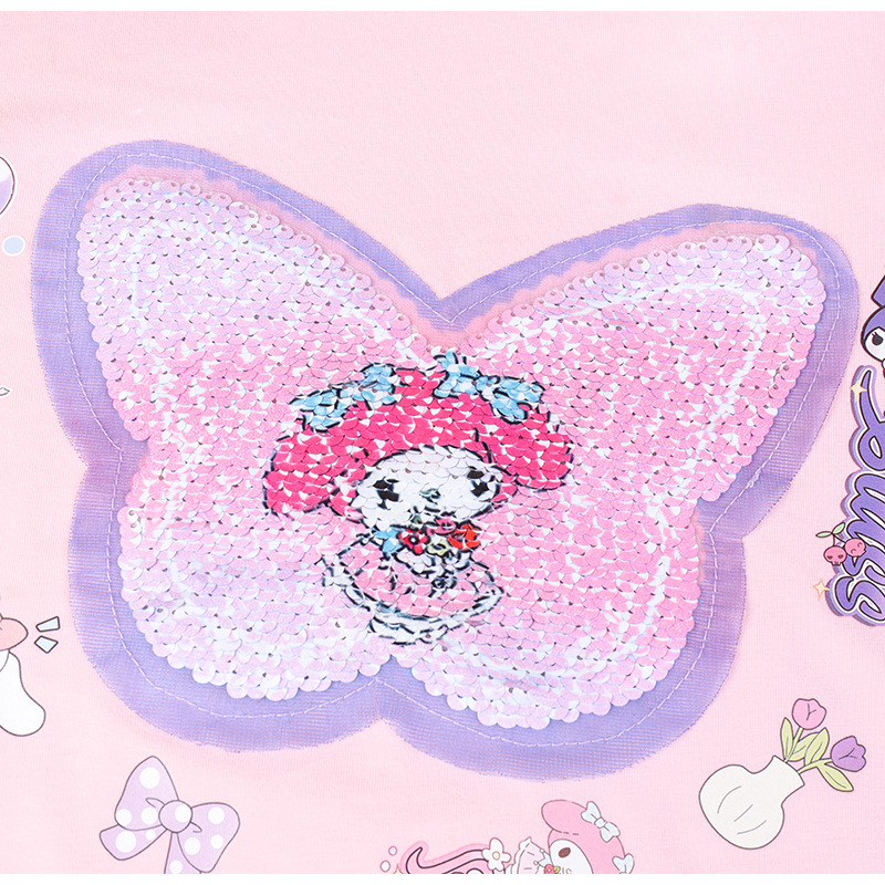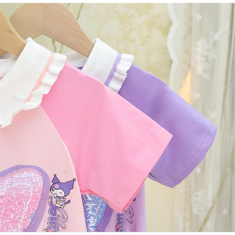 2024 여름 새로운 패션 걸스 Sequin 원피스 티셔츠 색상 변경 소녀 탑 만화 올스타 매치 웨스턴 스타일 코튼스토어 가기