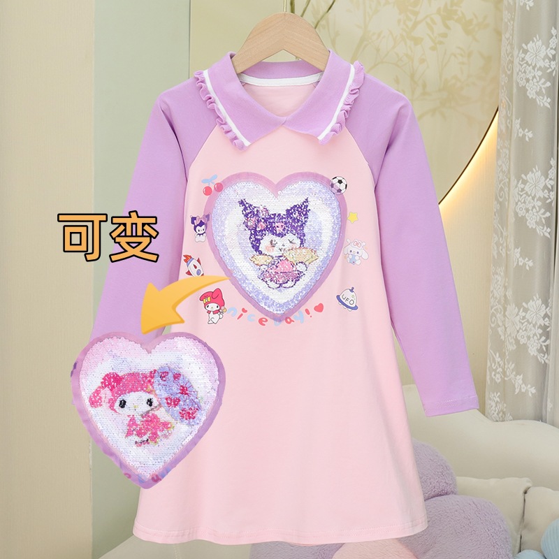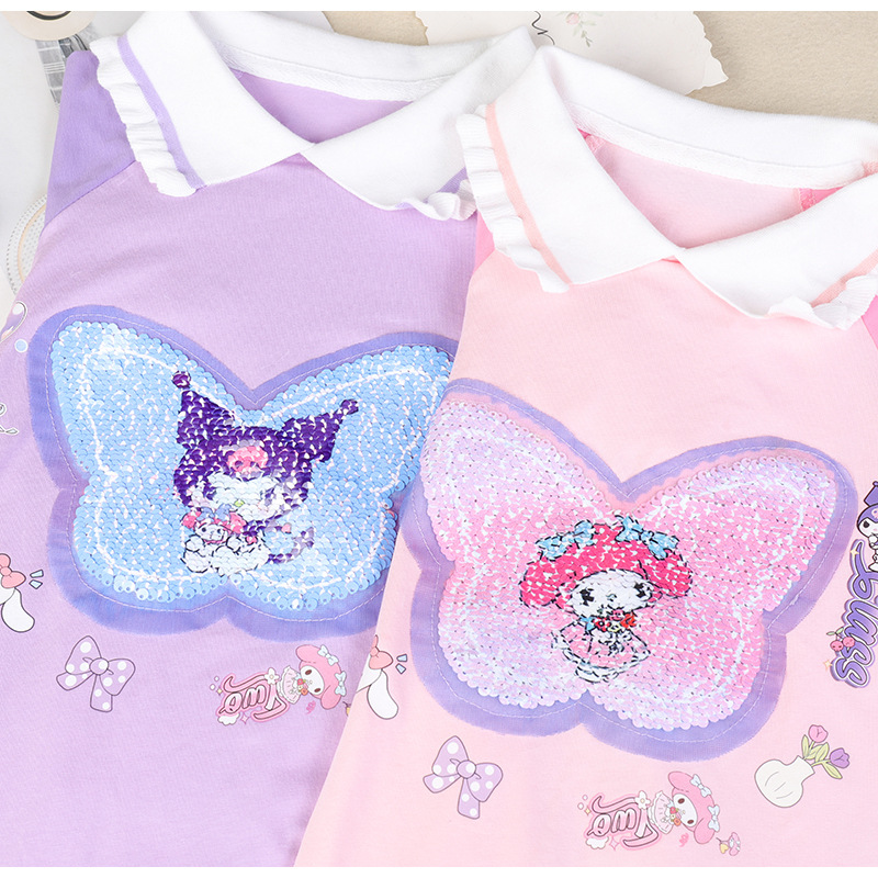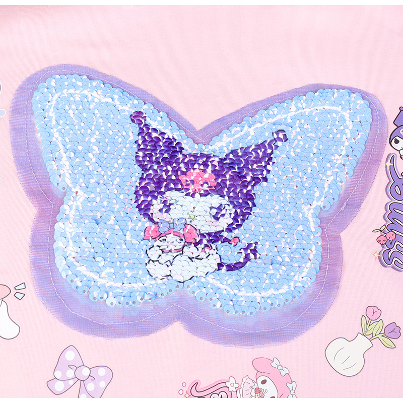 2024 여름 새로운 패션 걸스 Sequin 원피스 티셔츠 색상 변경 소녀 탑 만화 올스타 매치 웨스턴 스타일 코튼
