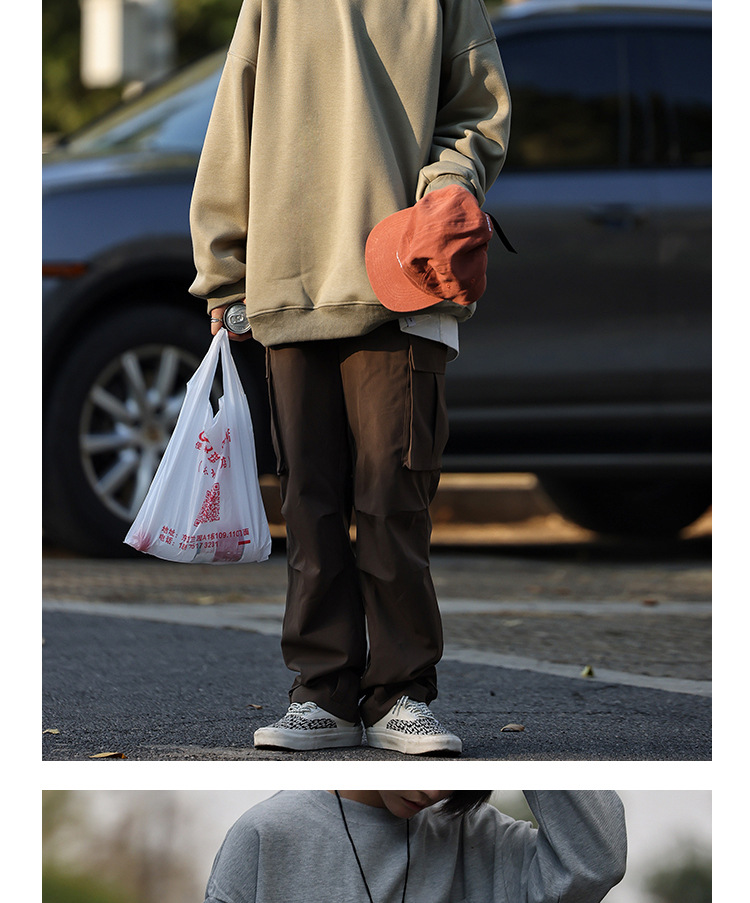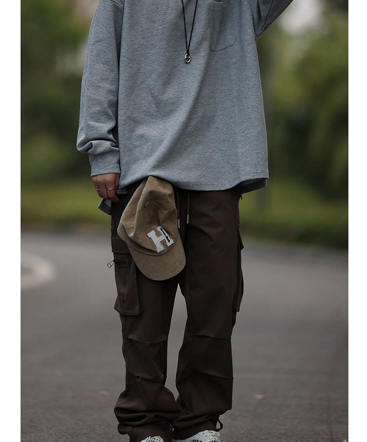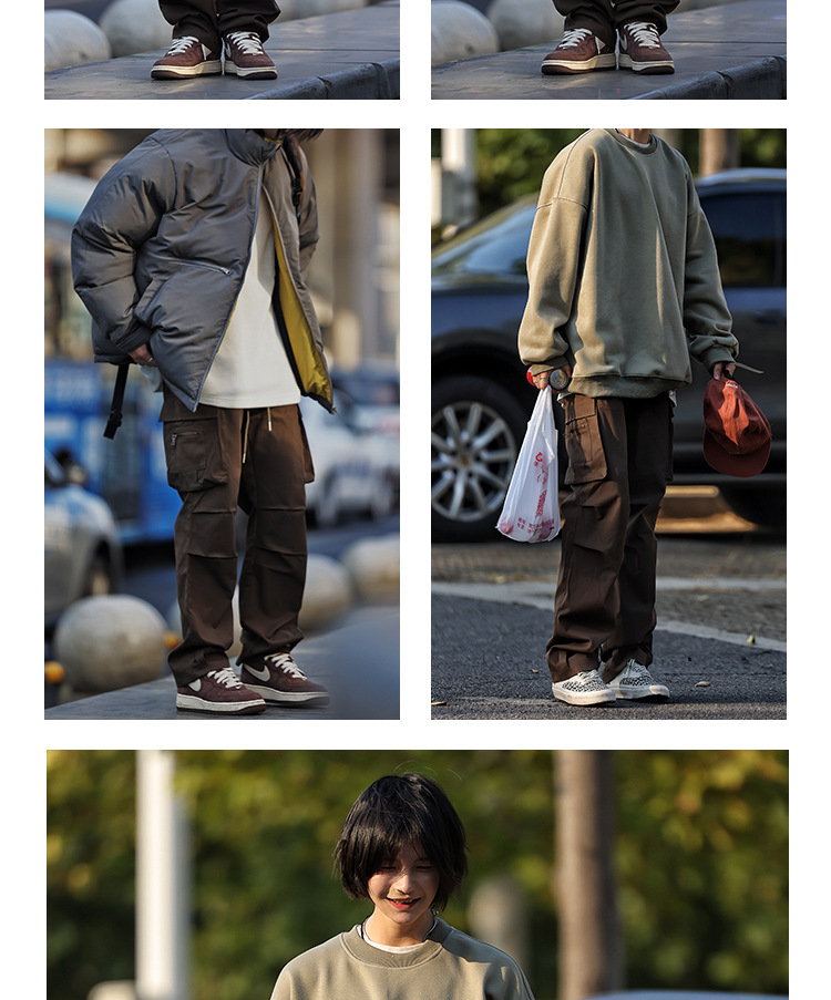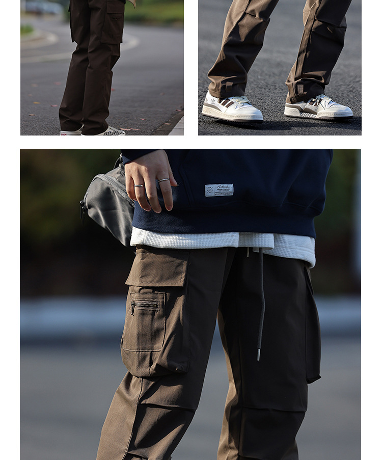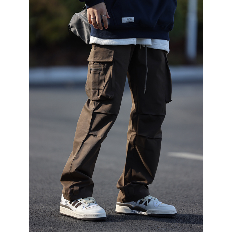 2024 롱 배럴 캐주얼 바지 남성용 작업복 바지 여성용 포켓 슬리밍 하이 스트리트 바이브 미국 유행 Instagram 스타일 스트리트 바지스토어 가기