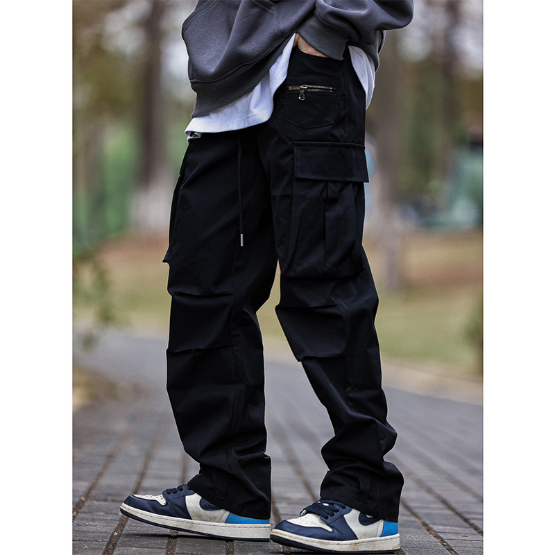2024 롱 배럴 캐주얼 바지 남성용 작업복 바지 여성용 포켓 슬리밍 하이 스트리트 바이브 미국 유행 Instagram 스타일 스트리트 바지