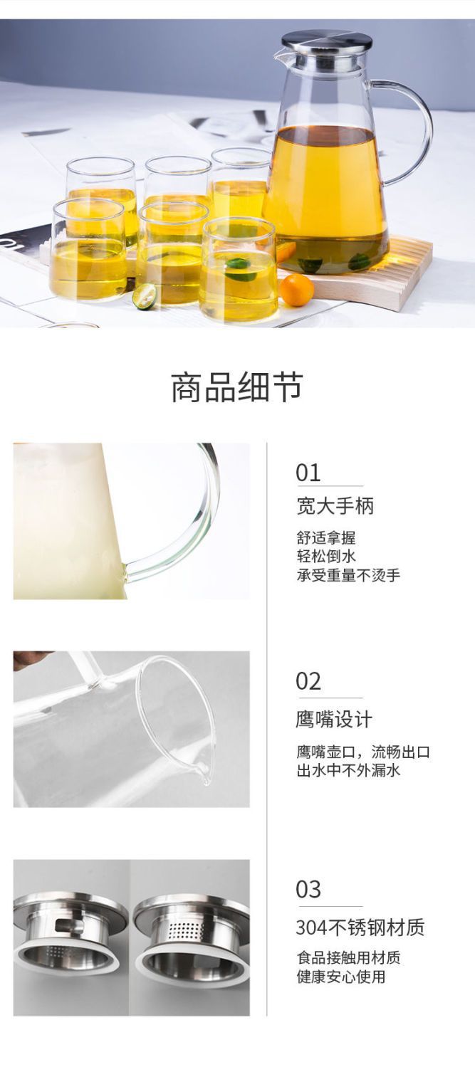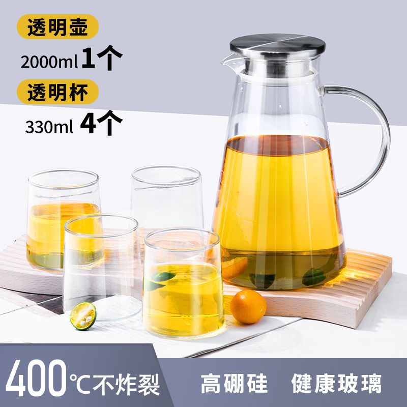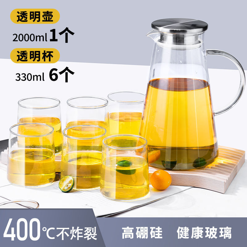 유리 주전자 콜드 주전자 폭발 방지 고온 냉각 주전자 대용량 세트 오픈 파이어 가정용 쿨 화이트 오픈 레드스토어 가기