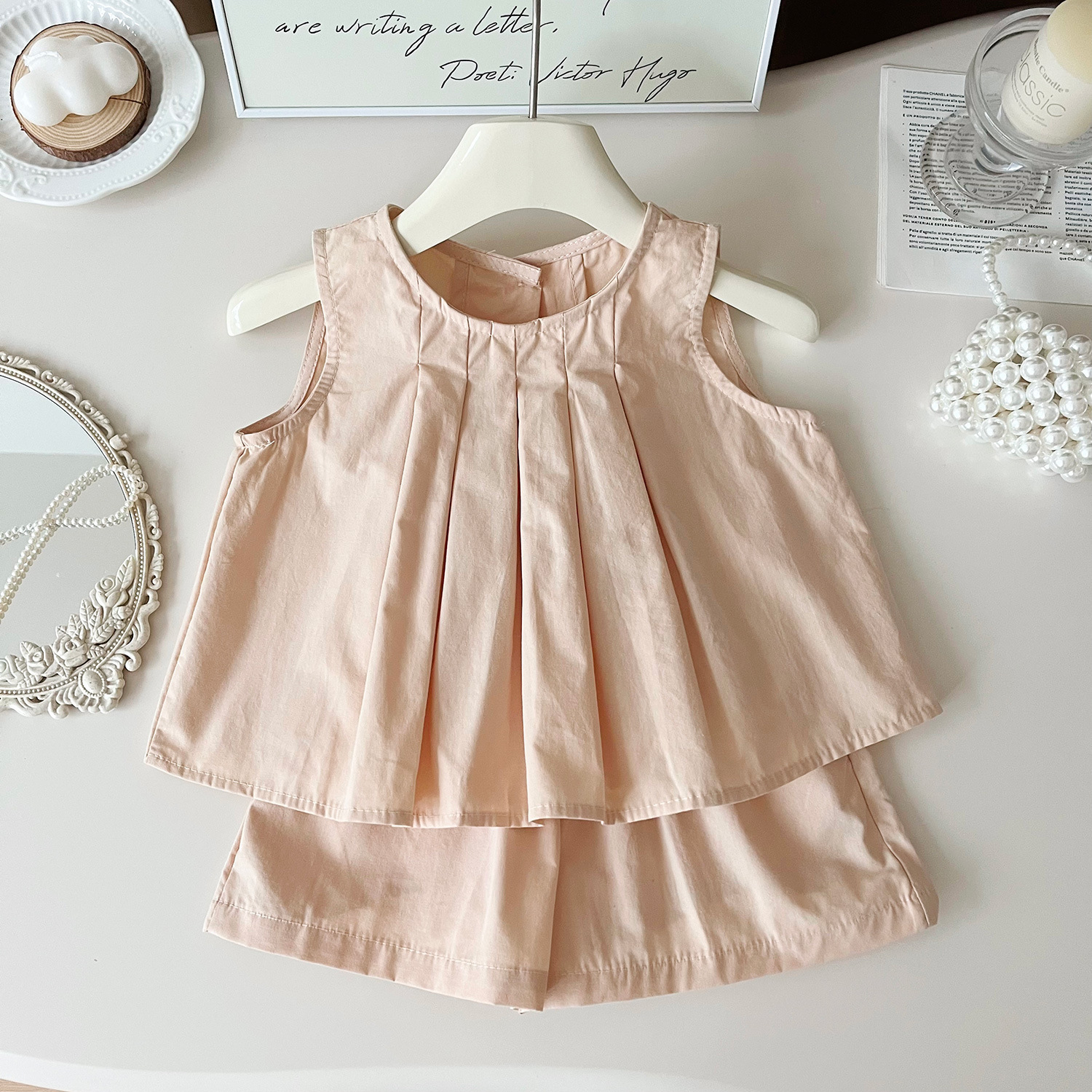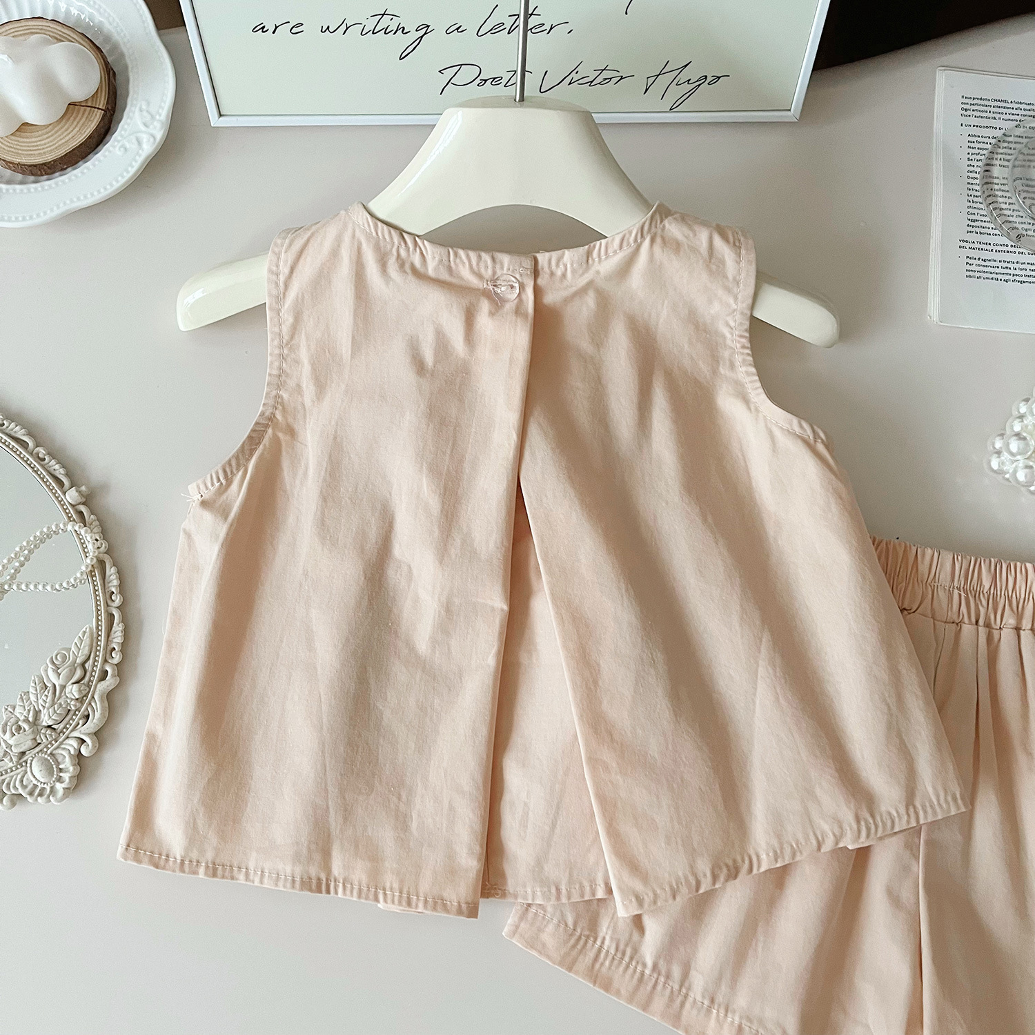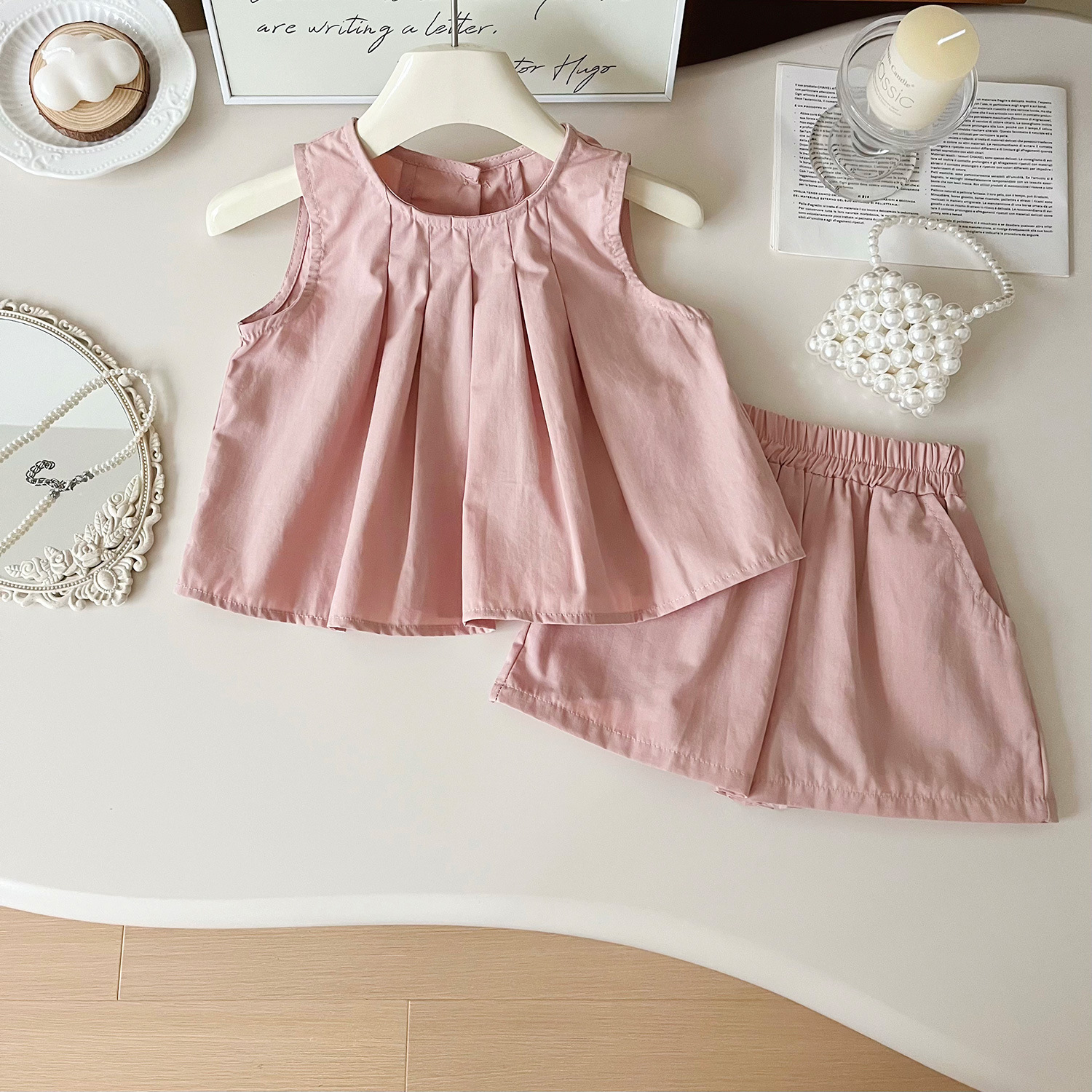 여자 세트 2024 여름 새로운 한국식 민소매 셔츠 반바지 여자 캐주얼 착용 투피스 세트