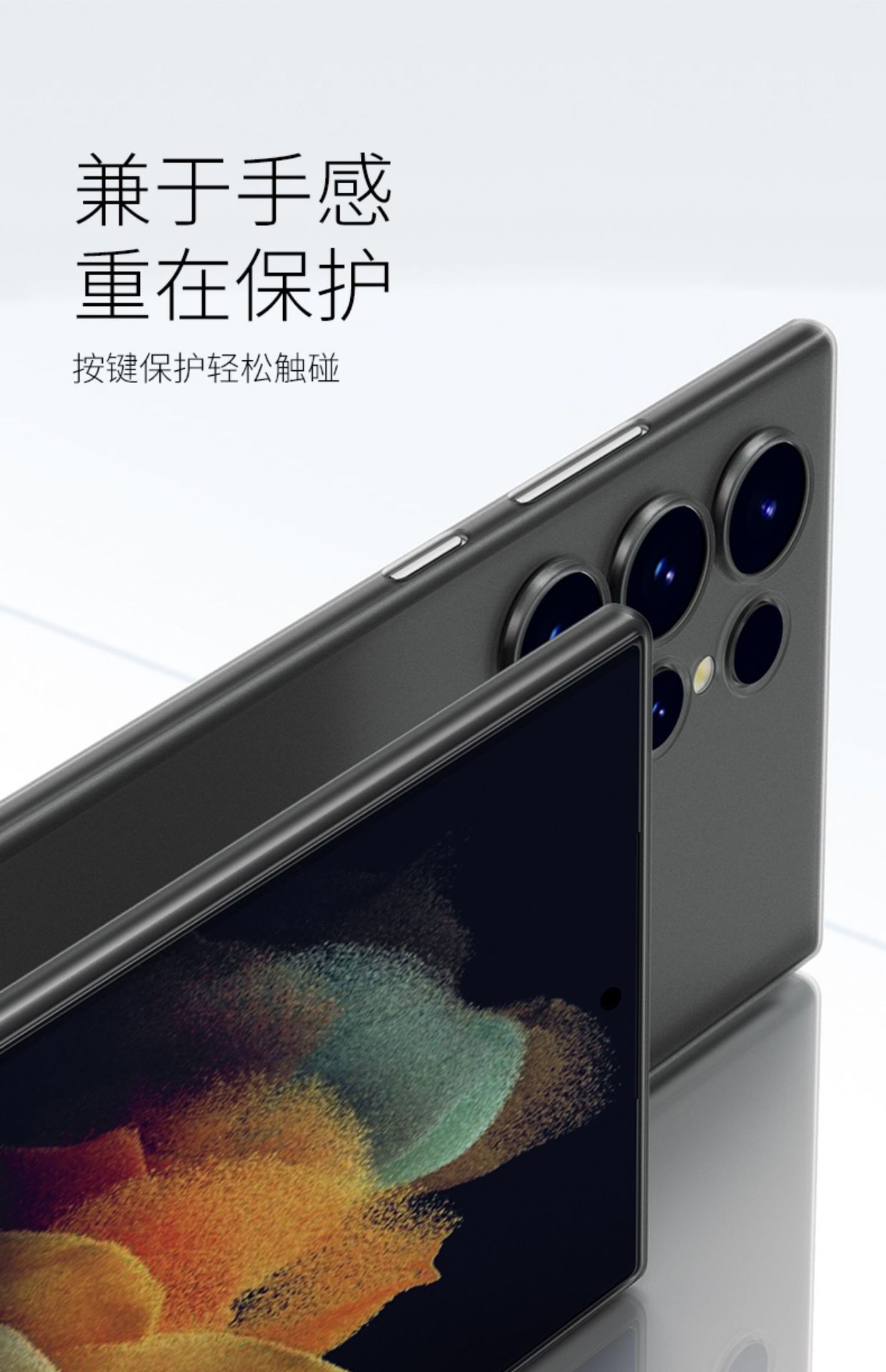 【商品说明】:采用进口TPU材料、不发黄、不变色、防指纹、防油污、肌肤手感、1mm纤薄手感、360度全包保护屏幕、无缝贴合、真机开模,孔位插拔无阻碍、摄像头全包防护。